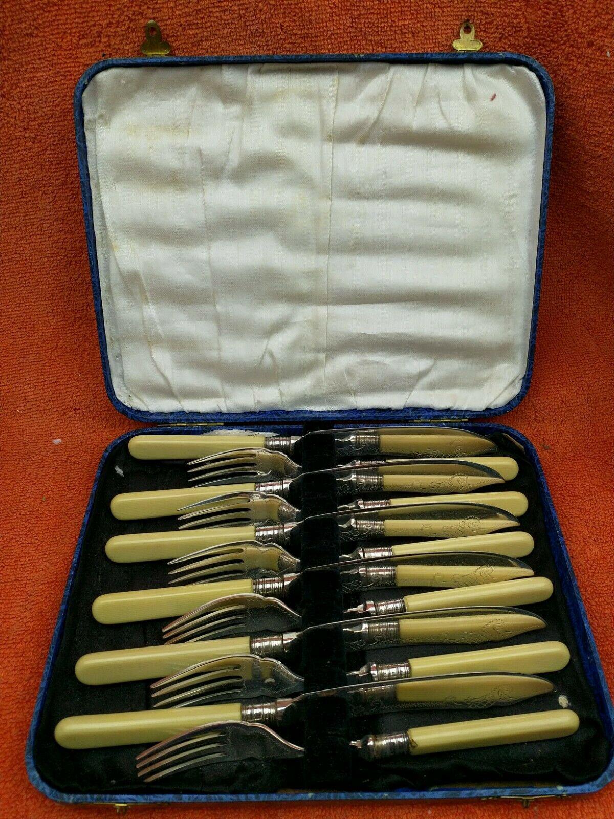 Vintage Silver Plate EPNS Fish Knife & Fork Set Cased c.1930