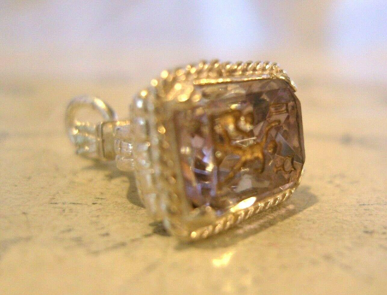 Vintage Silver Pocket Watch Chain Fob 1950s Victorian Style Stone Set Large Seal Fob