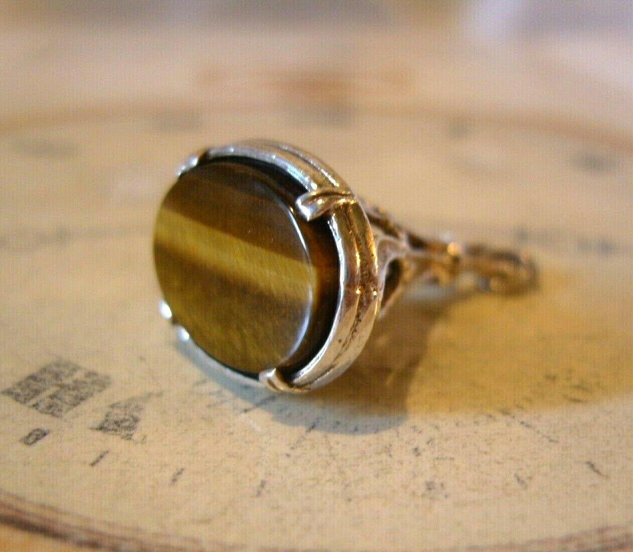 Vintage Silver & Tigers Eye Pocket Watch Chain Fob 1970s Art Nouveau Revival