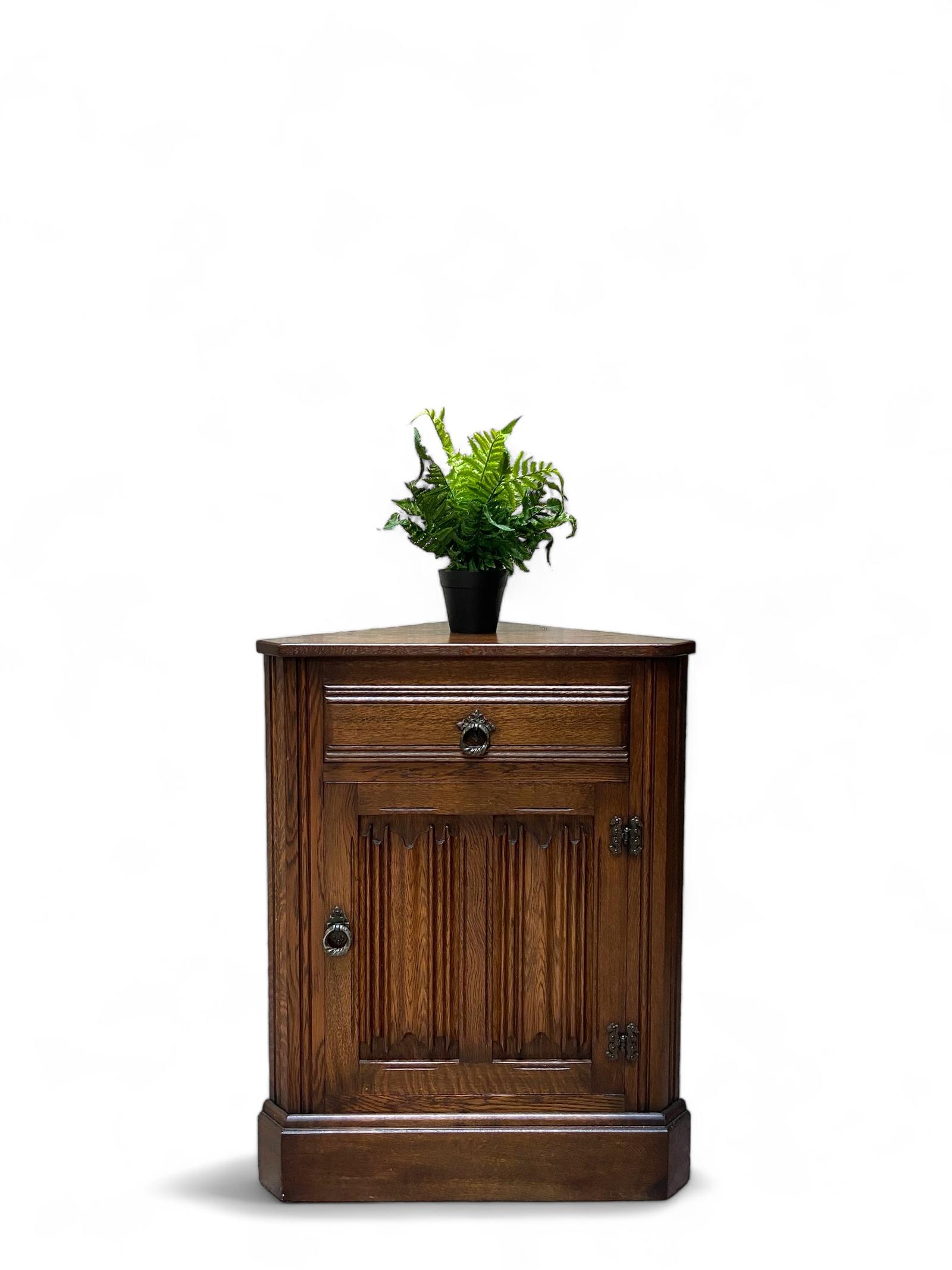 Vintage Small Corner Cabinet / Brown Oak / Made in England c.1970
