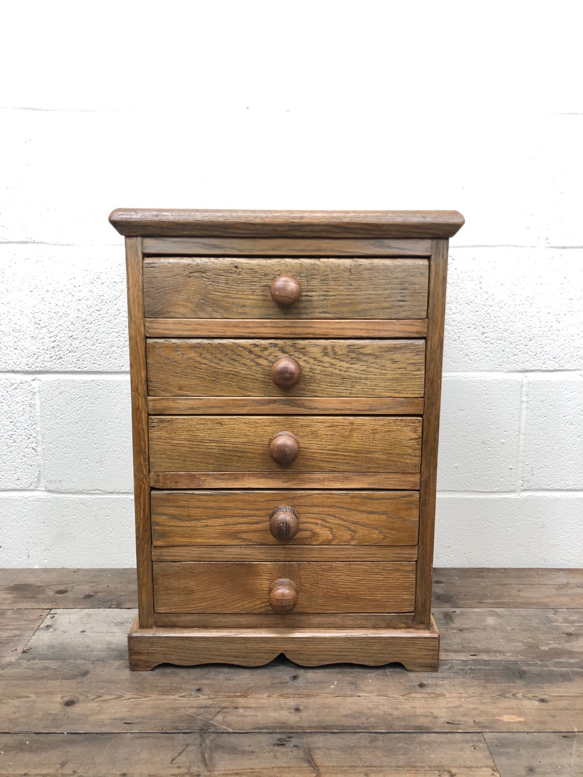 Vintage Small Oak Chest of Five Drawers (1 of 6)