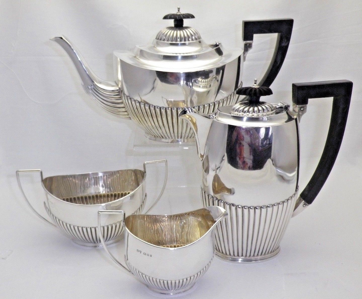 Vintage Solid Silver 4 Piece Half Fluted Tea Set Service 33oz 1925