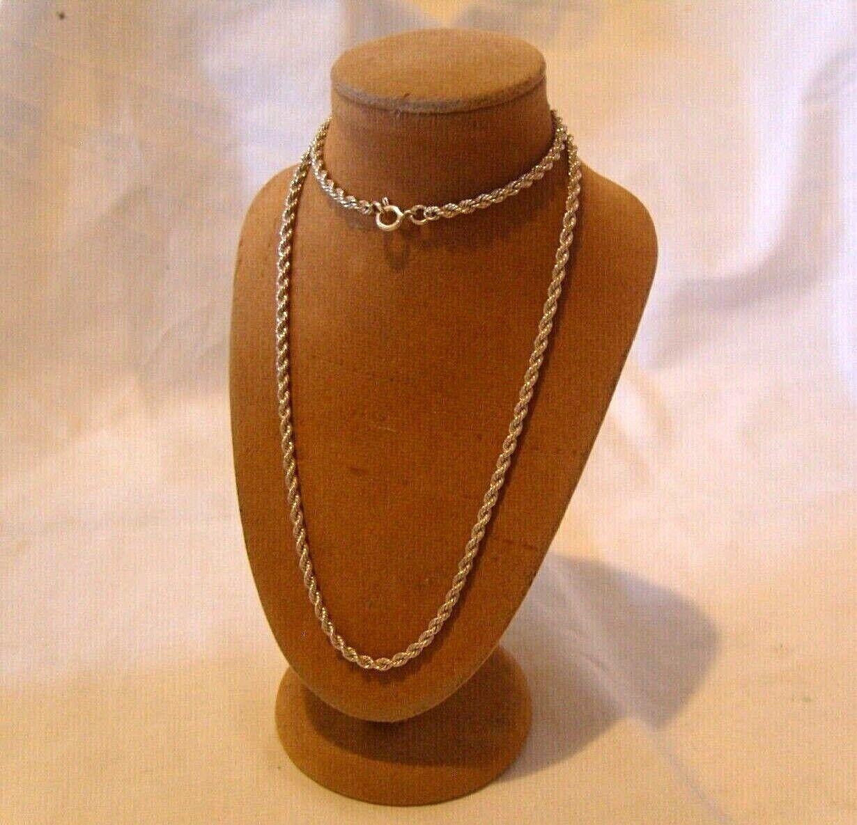Vintage Solid Silver 925 Necklace 1970s Rope Link Long 20" 13.1 Grams