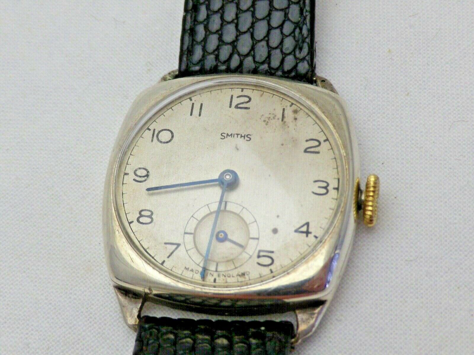 Vintage Solid Silver Smiths Made in England Cushion Case Gents Watch 1946