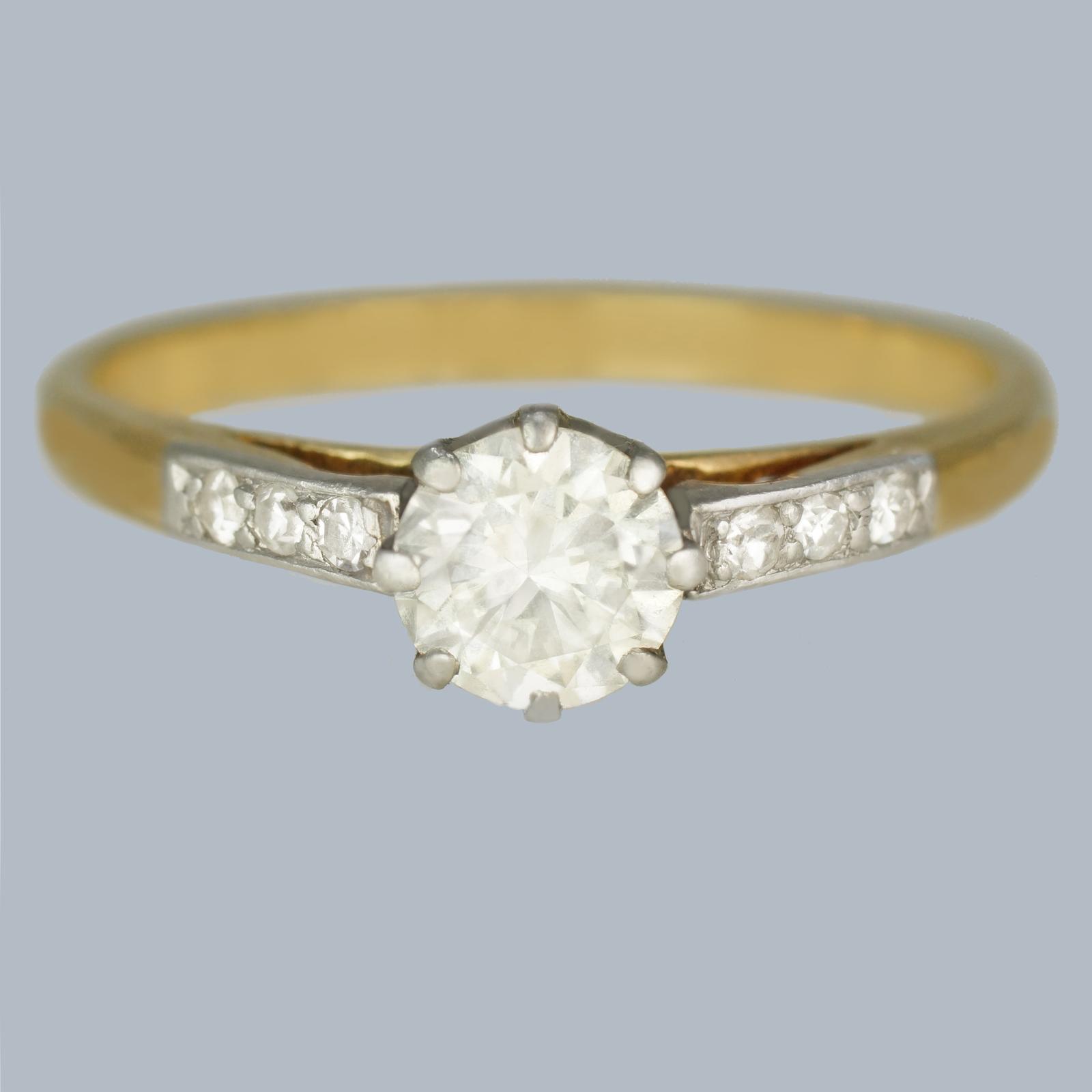 Vintage Solitaire Engagement Ring 18ct Gold Antique Diamond Ring Total 0.75 Carat