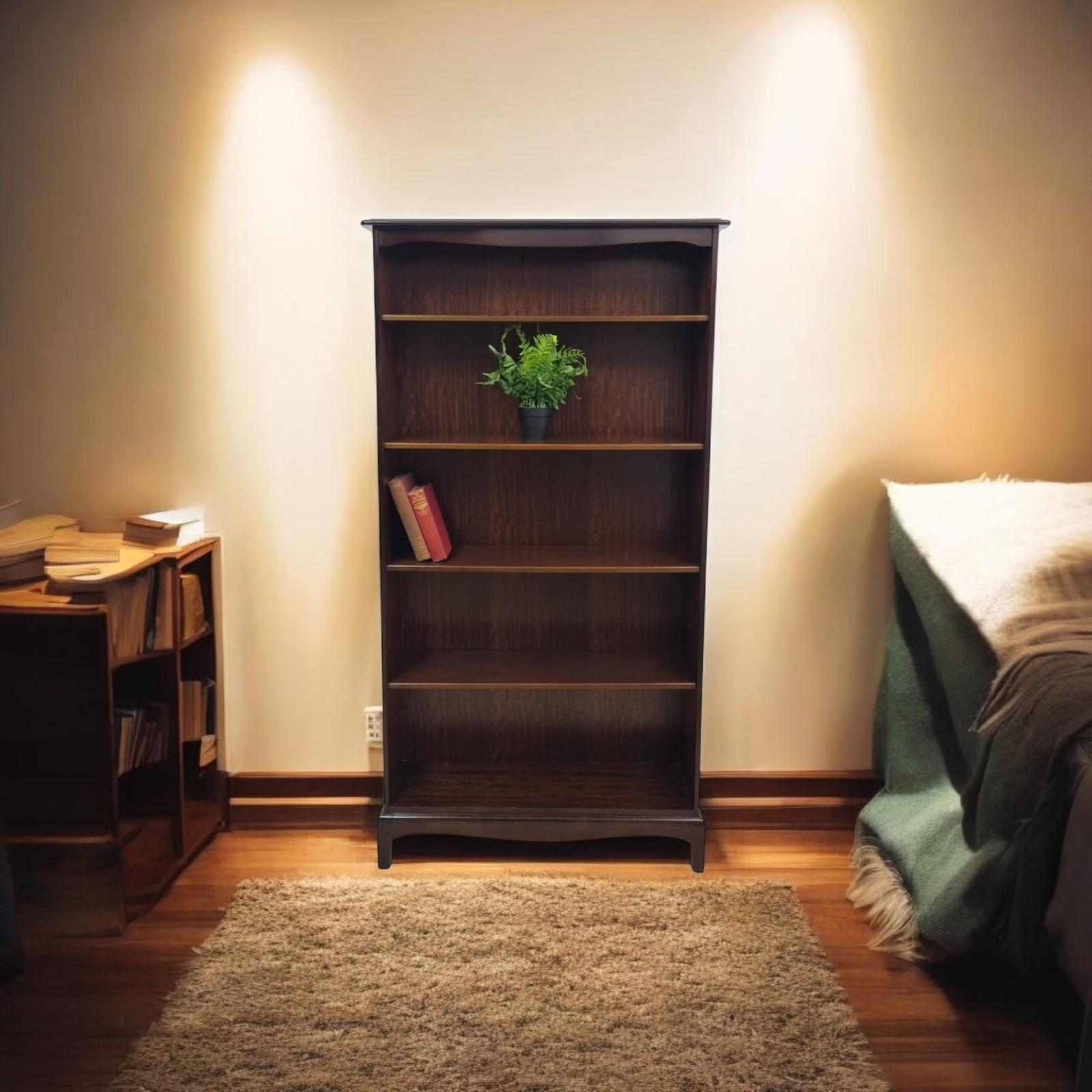 Vintage Stag Minster Tall Mahogany Open Bookcase / Made in England c.1970