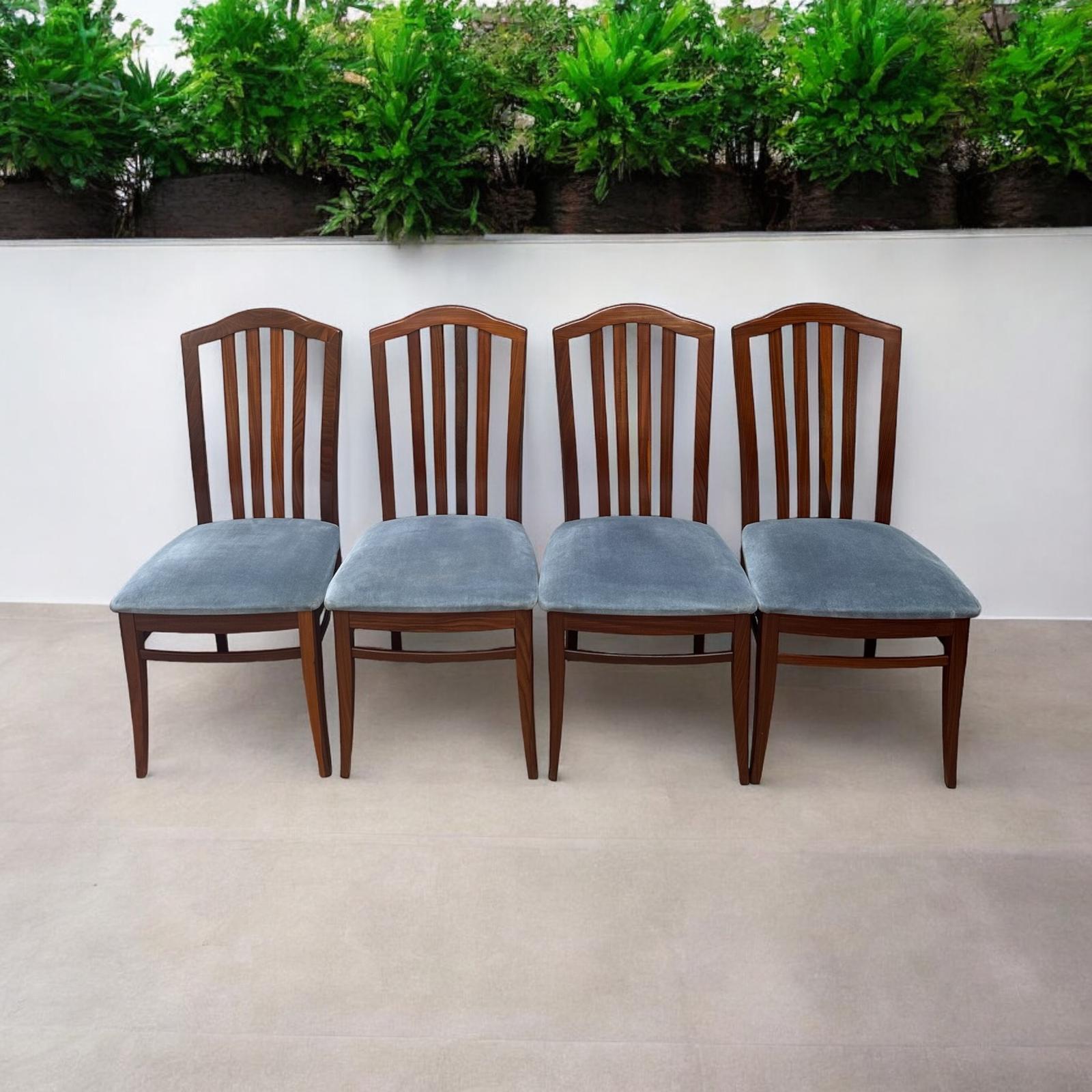 Vintage Stag Minstrel Dining Chairs / Set of 4 / Blue Fabric