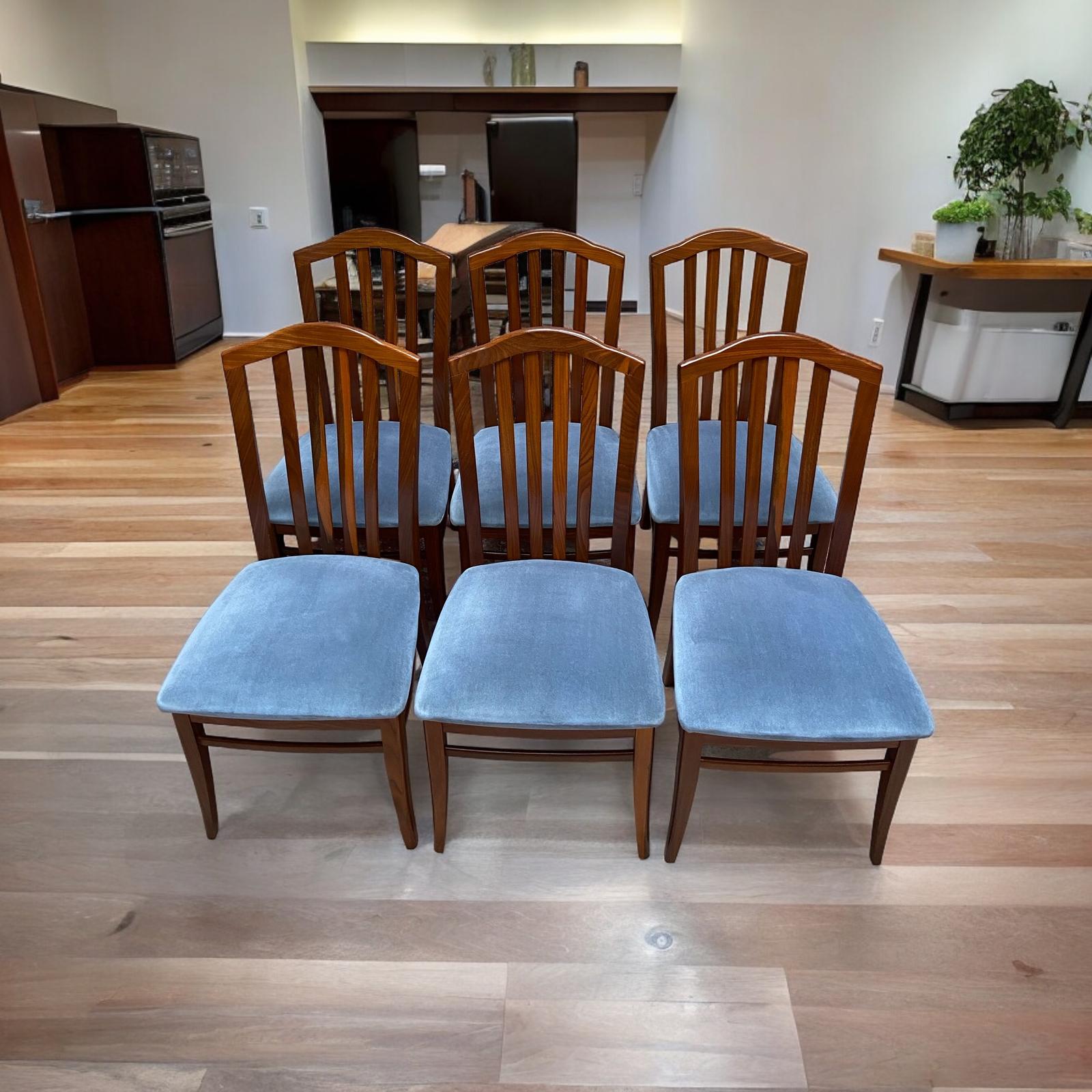 Vintage Stag Minstrel Dining Chairs / Set of 6 / Blue Fabric