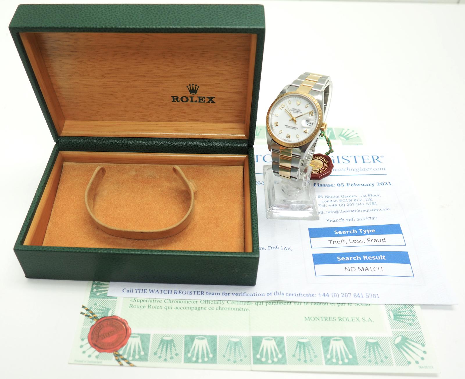 Vintage Steel  Gold Gents Rolex Watch  Rolex Oyster Perpetual Date Rare White Dial Box  Papers (1 of 14)