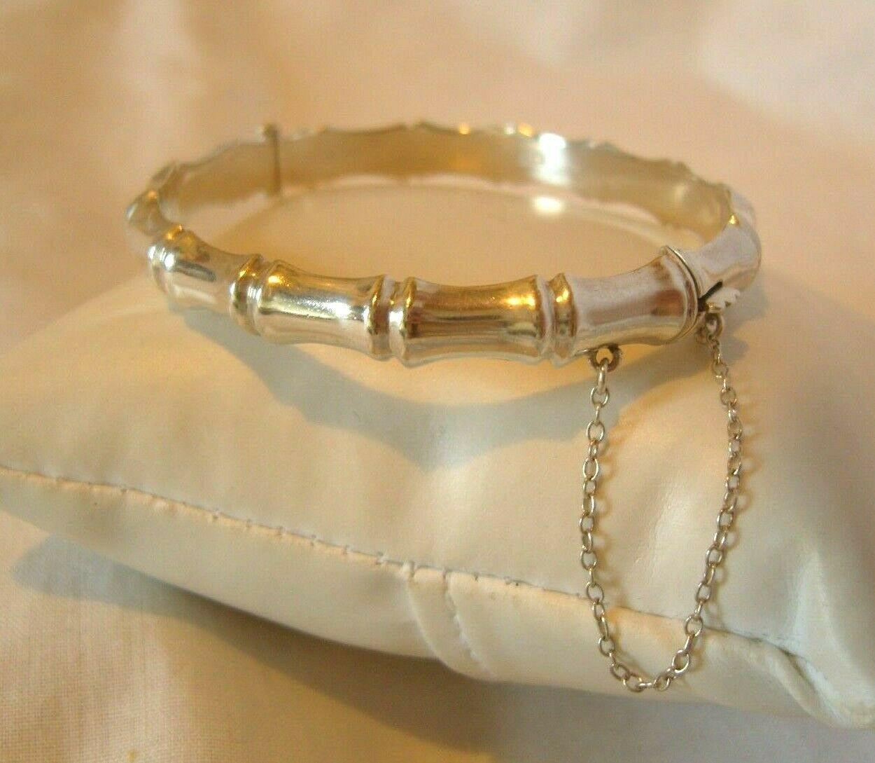 Vintage Sterling Silver Bamboo Bangle 1961 Ornate Silver Bracelet 7 1/4" Length