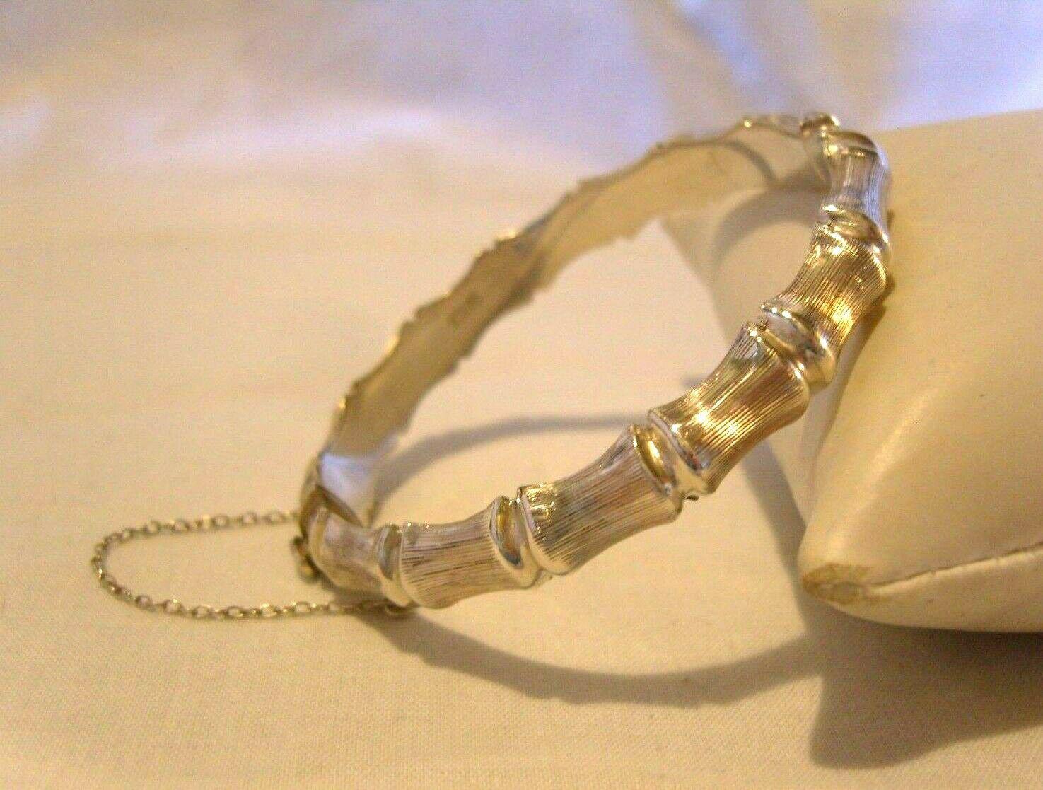 Vintage Sterling Silver Bamboo Bangle 1978 Chunky Bracelet 7" Length 14 Grams