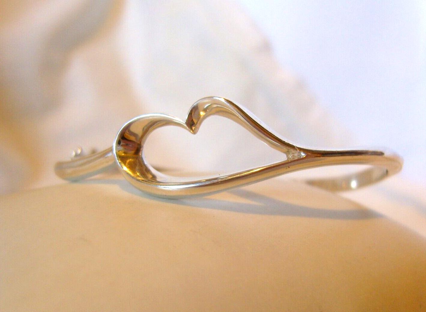 Vintage Sterling Silver Bangle 1970s Abstract Love Heart Bracelet 7" Length