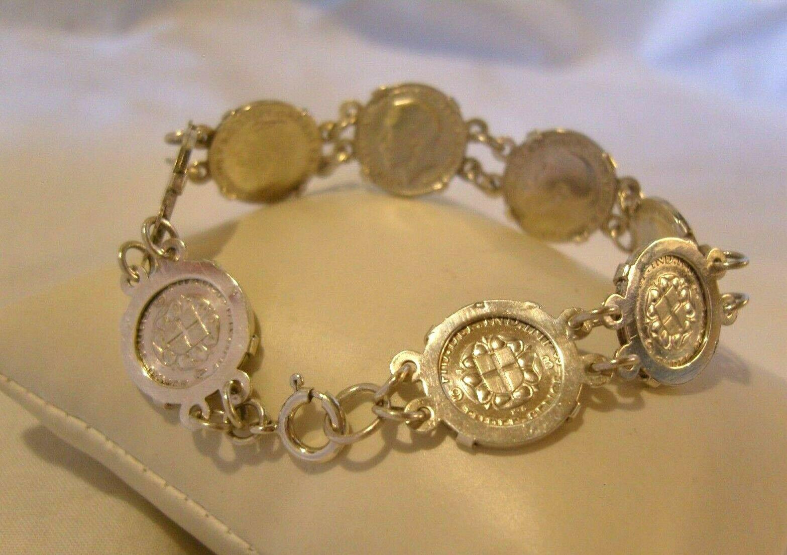 Vintage Sterling Silver Bracelet 1940 WW2 Threepence Coins 7 1/2" Length 19.2 Grams