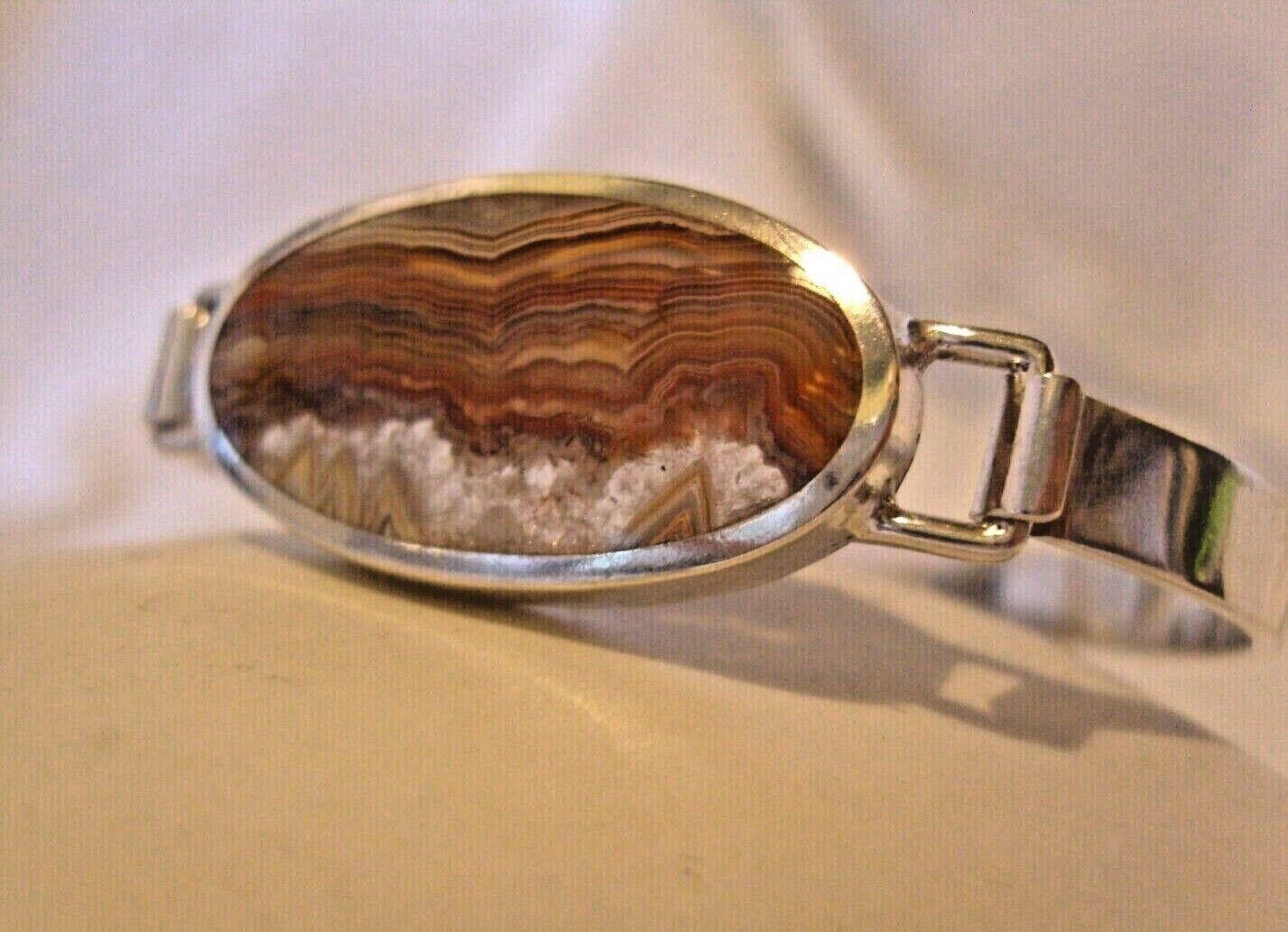 Vintage Sterling Silver & Chalcedony Bangle 1980 Silver Bracelet