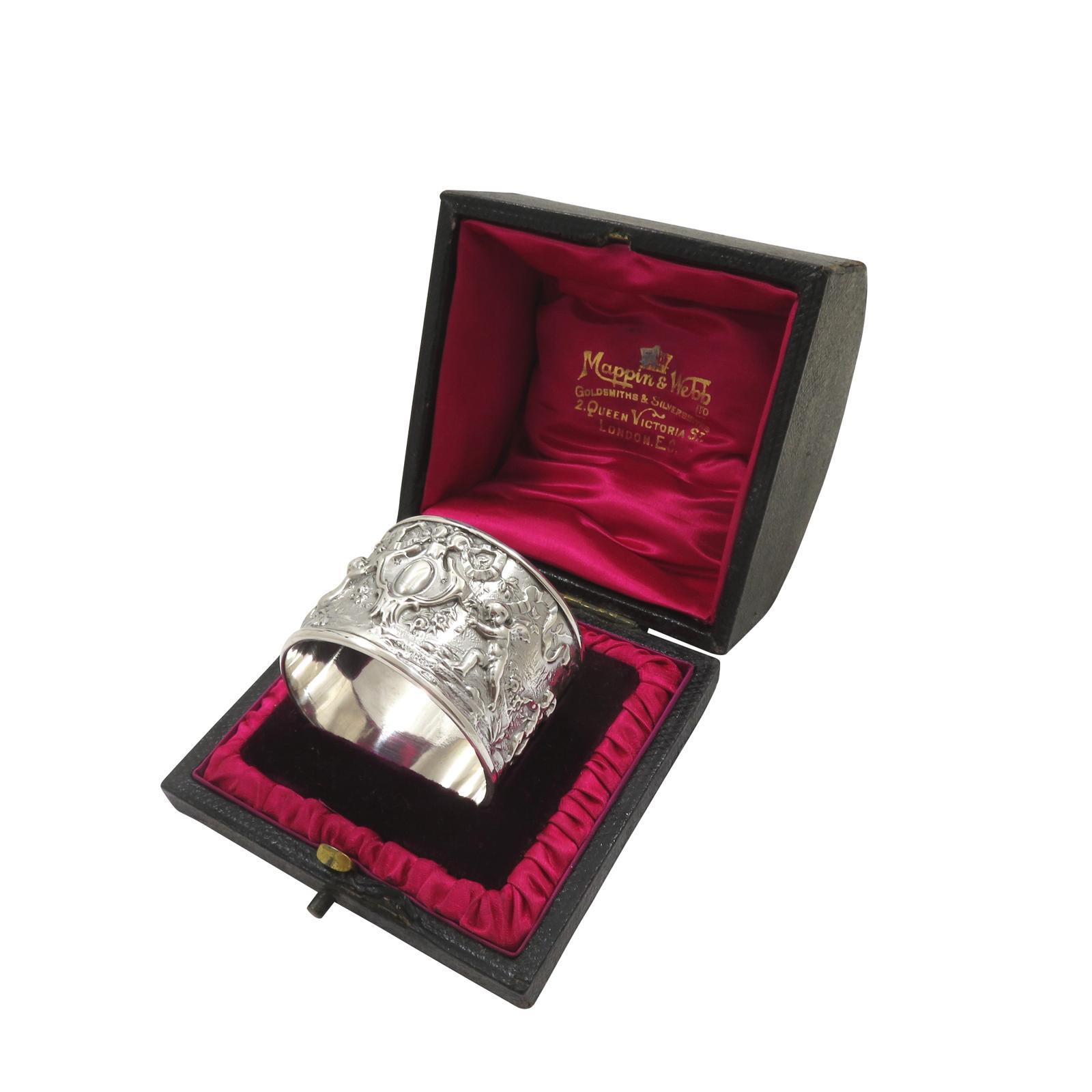 Vintage Sterling Silver 'Cherubs' Napkin Ring in Case