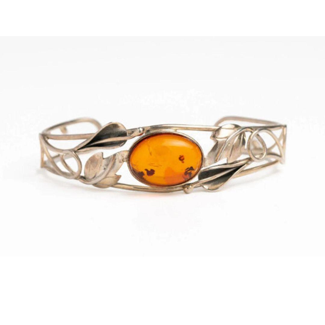 Vintage Sterling Silver Cuff Floral Bangle with Amber