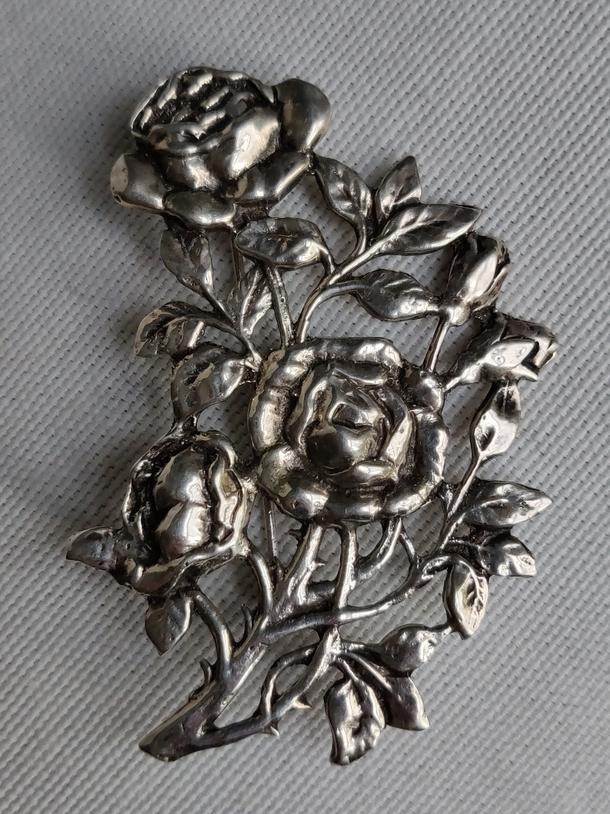 Vintage Sterling Silver Flower Roses Brooch Large Pin Floral 22 Grams