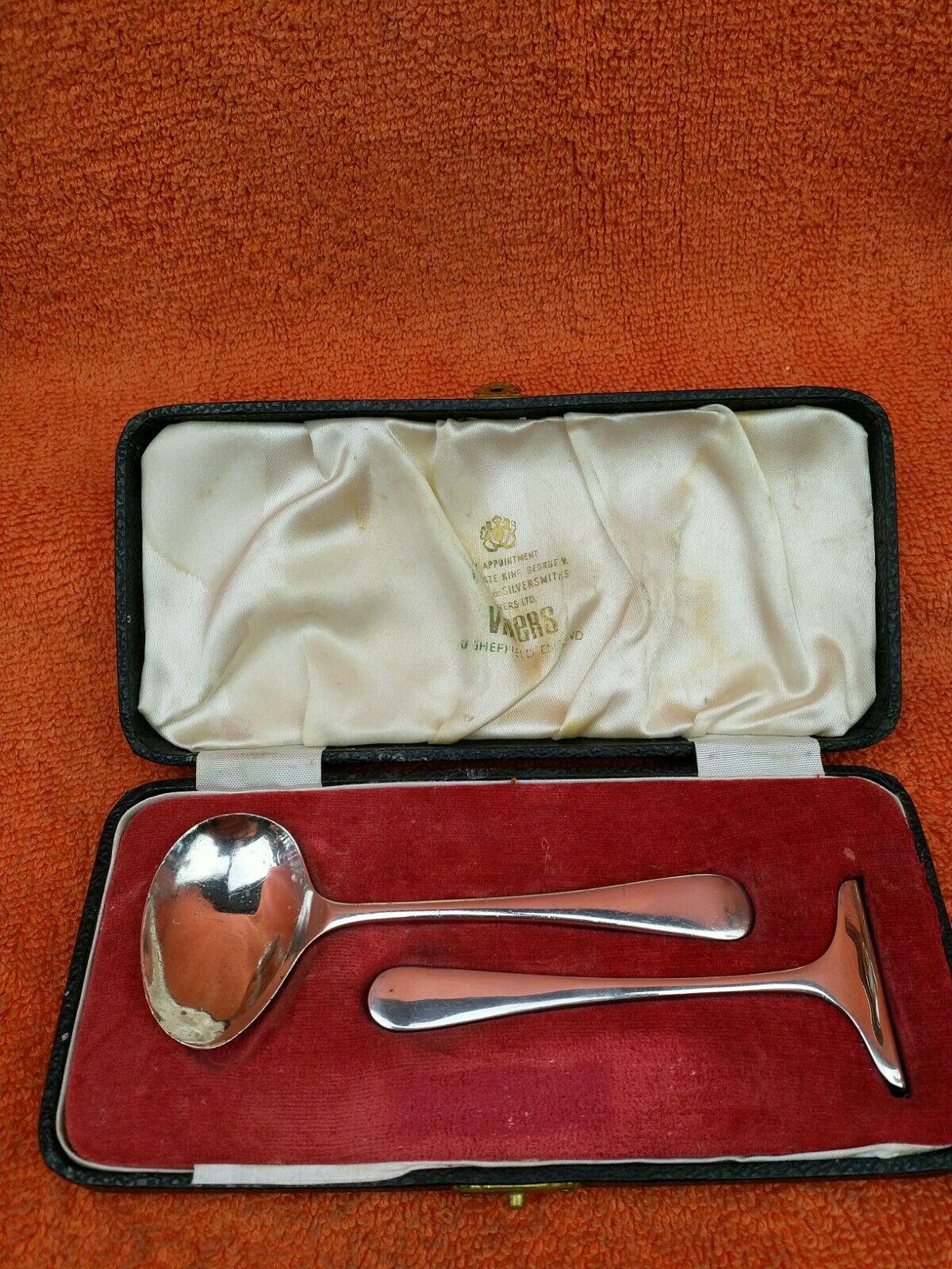 Vintage Sterling Silver Hallmarked Cased Spoon & Pusher 1955 Sheffield, Viner's Ltd