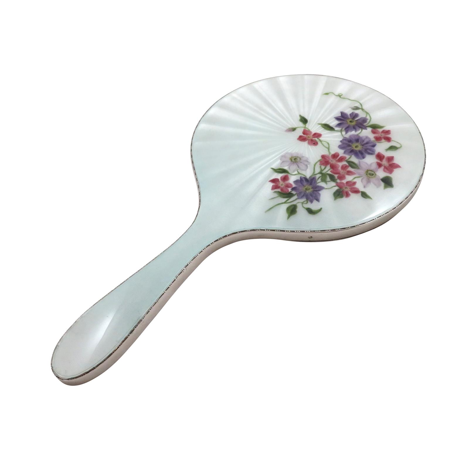 Vintage Sterling Silver & Hand Painted Roses Enamel Hand Mirror