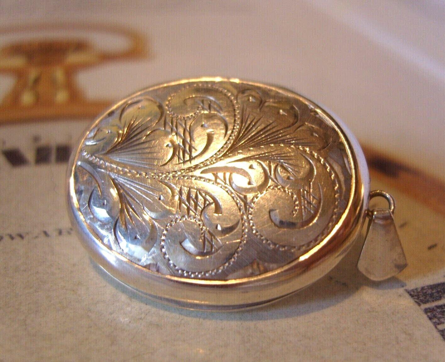 Vintage Sterling Silver Pocket Watch Chain Photograph Fob 1978 Large Ornate Puffy Fob