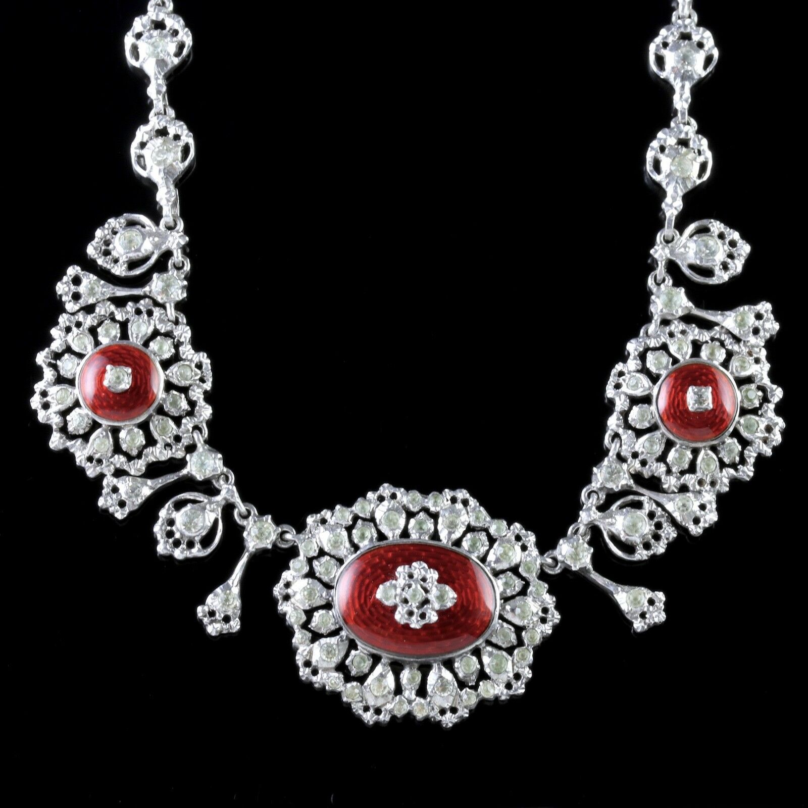 Vintage Sterling Silver Red Enamel Paste Collar Dated London 1956