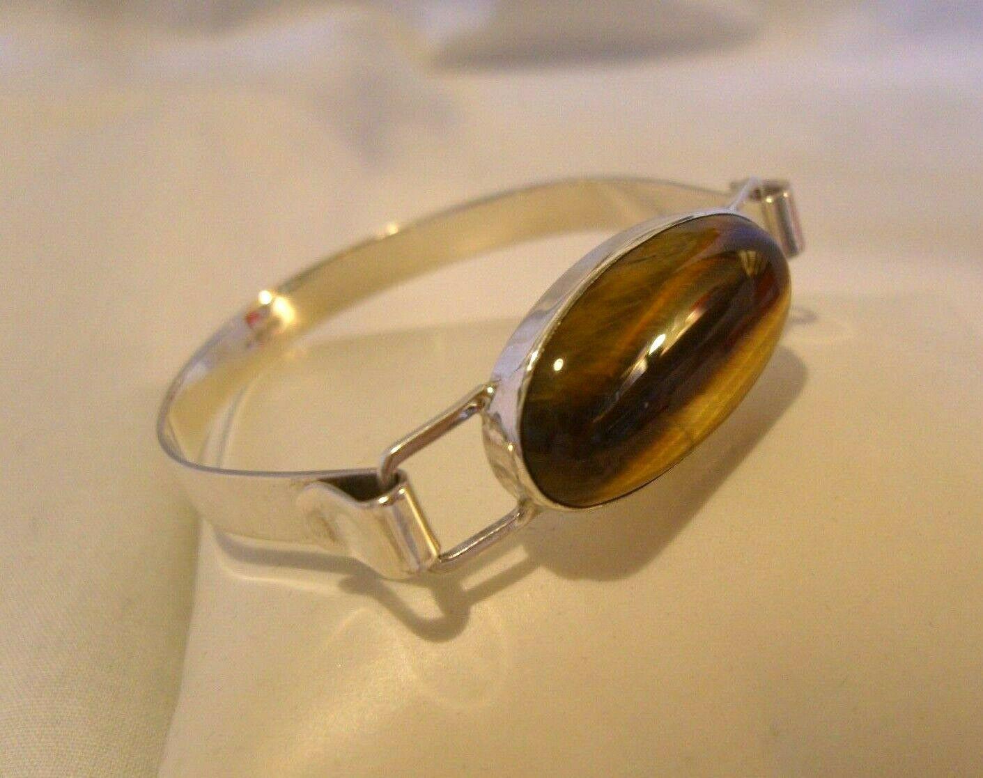 Vintage Sterling Silver & Tigers Eye Bangle 1977 Silver Bracelet 6 1/2" Length