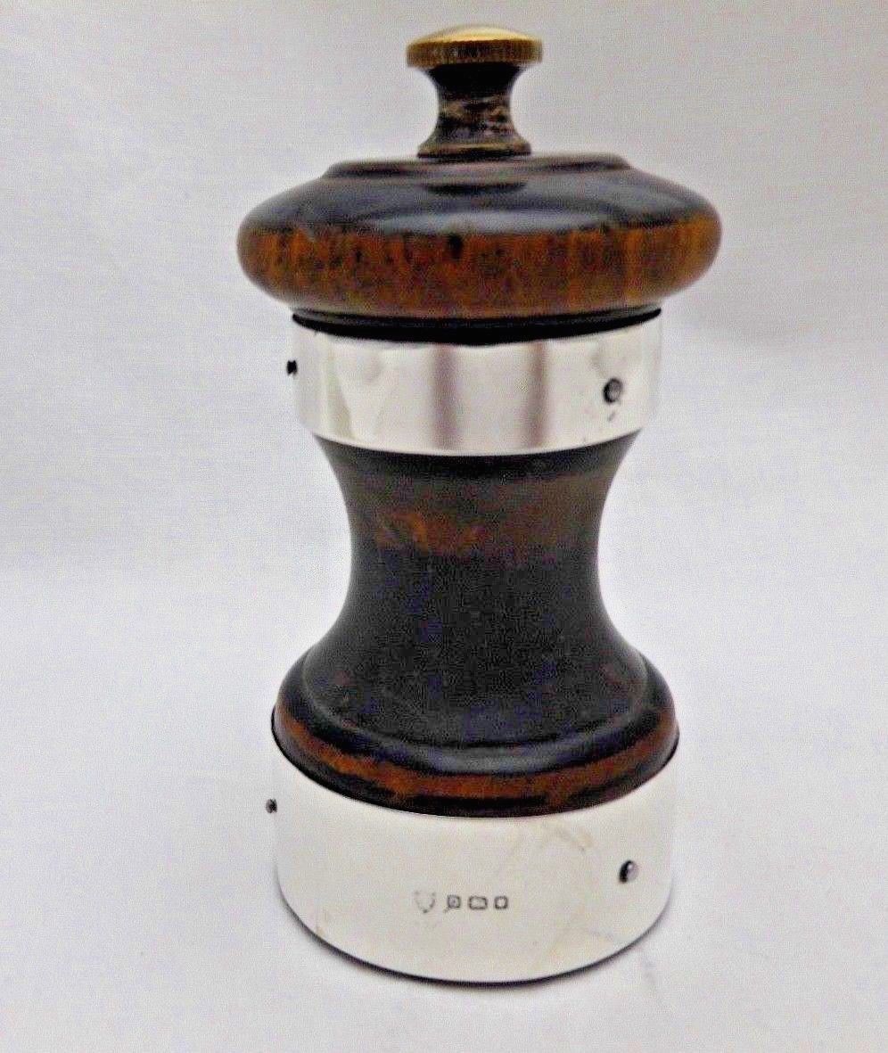 Vintage Sterling Silver & Wood Peugoet Pepper Mill Grinder