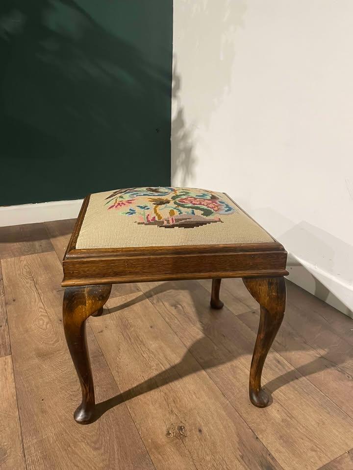 Vintage Stool - Having an Embroidered Floral Design Seat