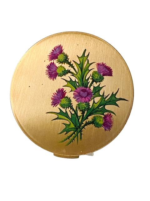 Vintage Stratton in Hand Enamel Scottish Thistles Powder Compact c.1960