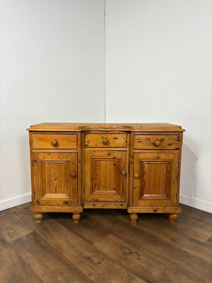 A charming stripped pine dresser base of traditional country house form, offering excellent storage and timeless rustic appeal. Originally the lower section of a larger dresser, it now serves beautifully as a standalone sideboard, kitchen cupboard, or storage cabinet.