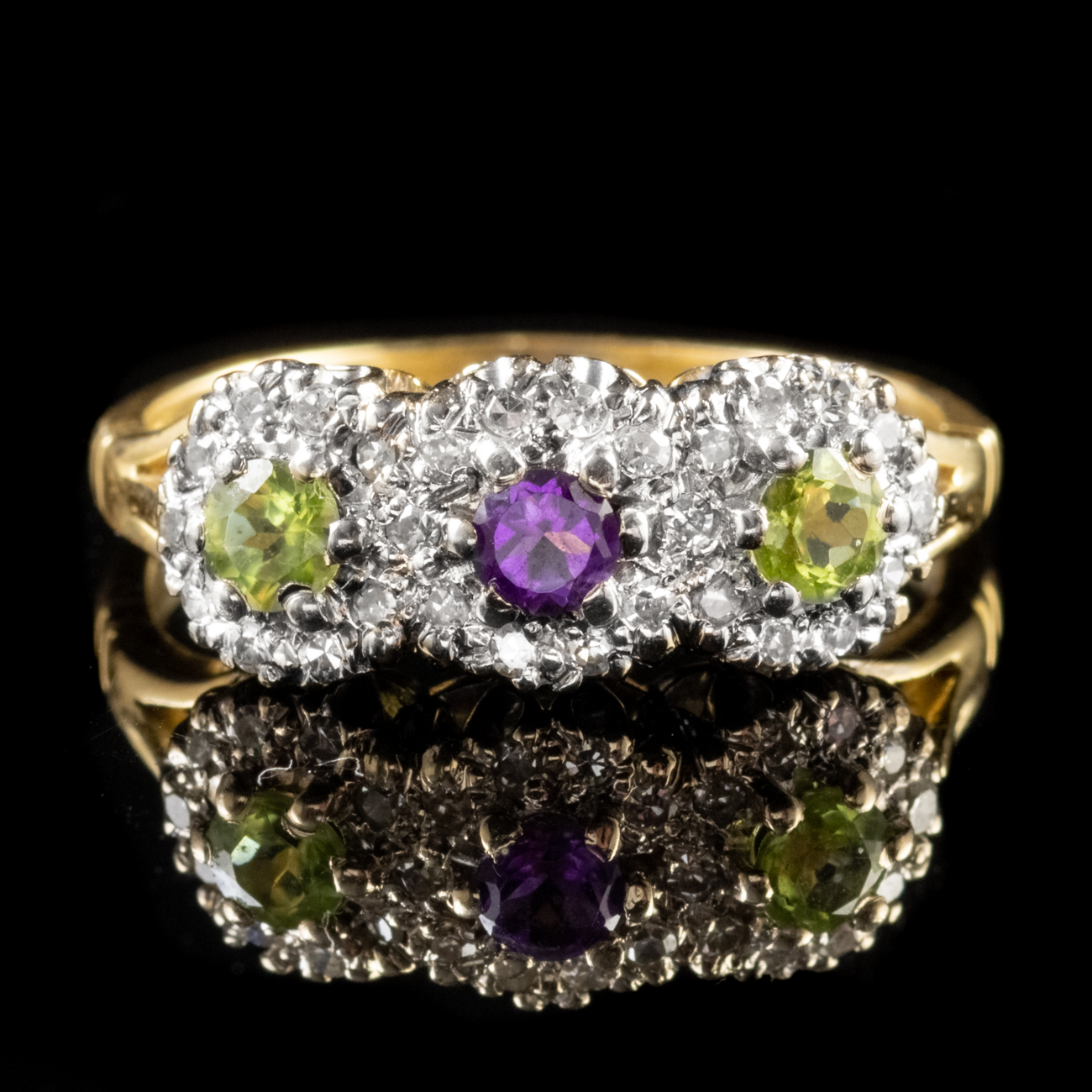 Vintage Suffragette Trilogy Cluster Ring 18ct Gold Dated London 1990