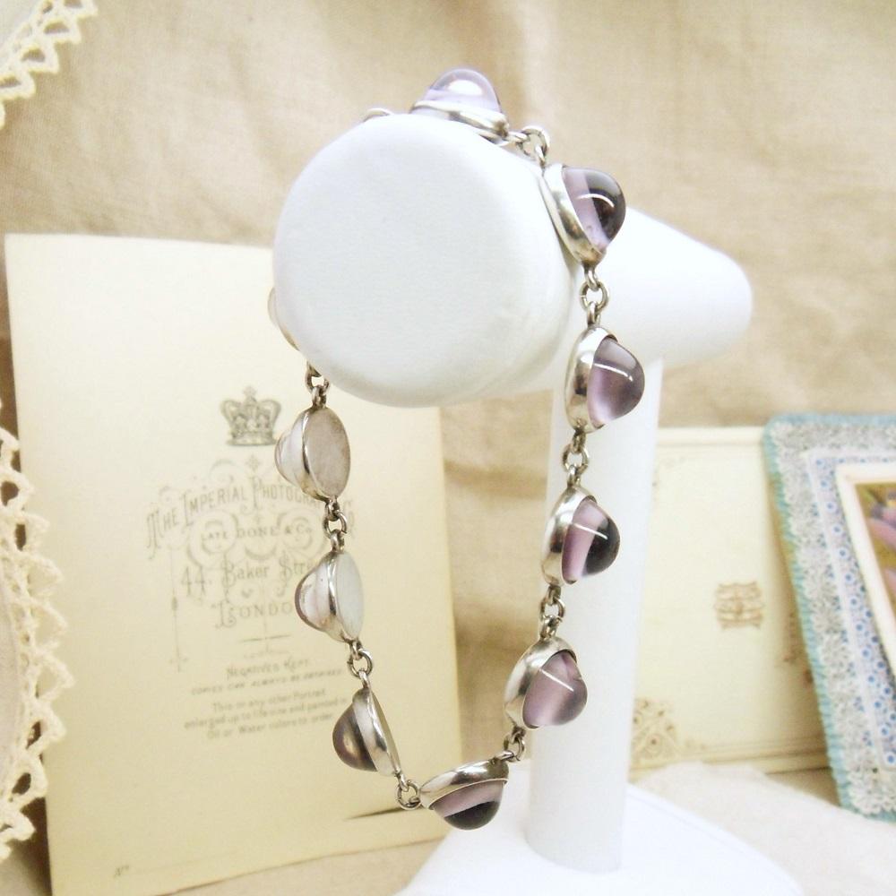 Vintage Swedish Silver Purple Cabochon Bracelet Dated 1956