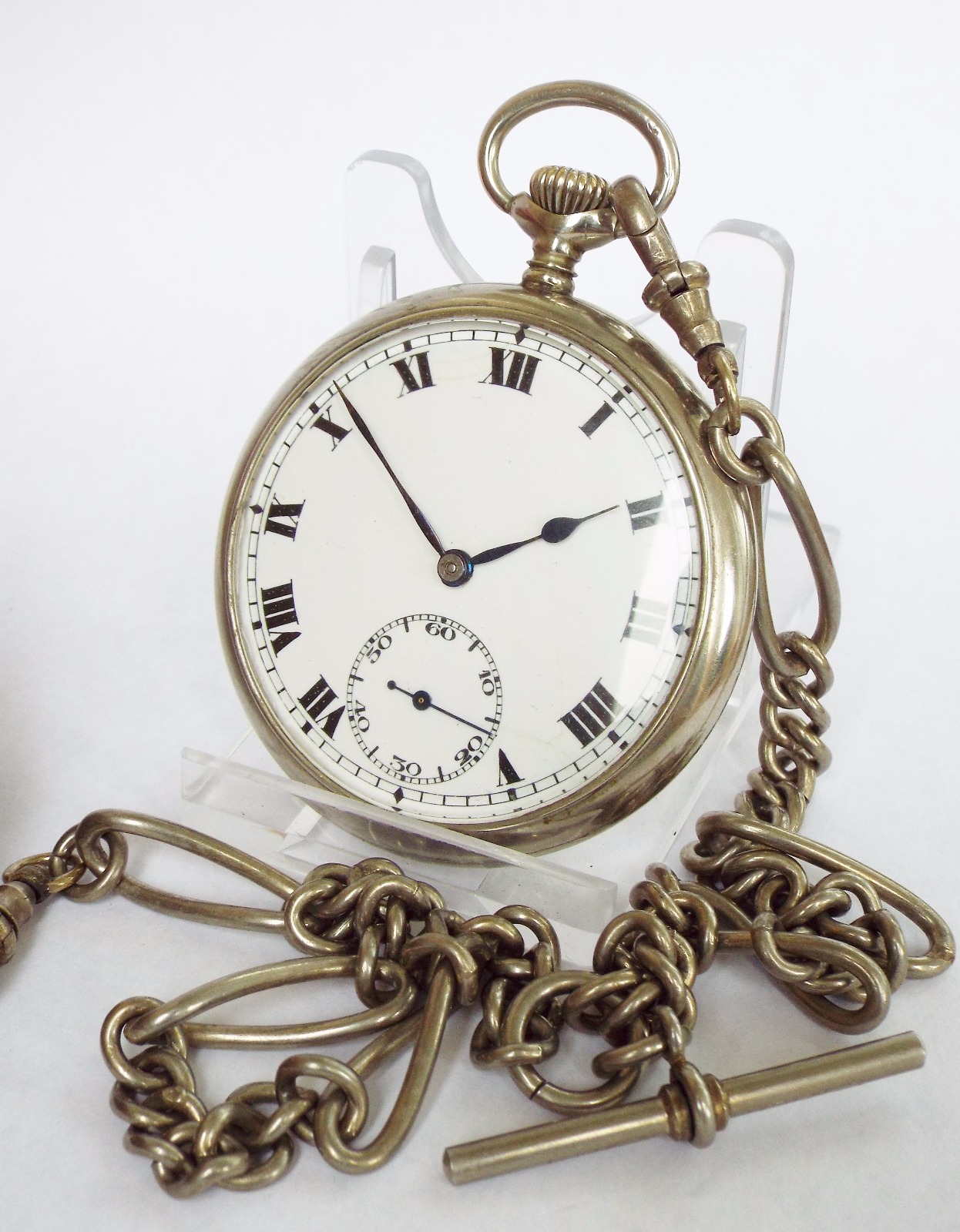 Vintage Swiss Open Faced Pocket Watch with Albert