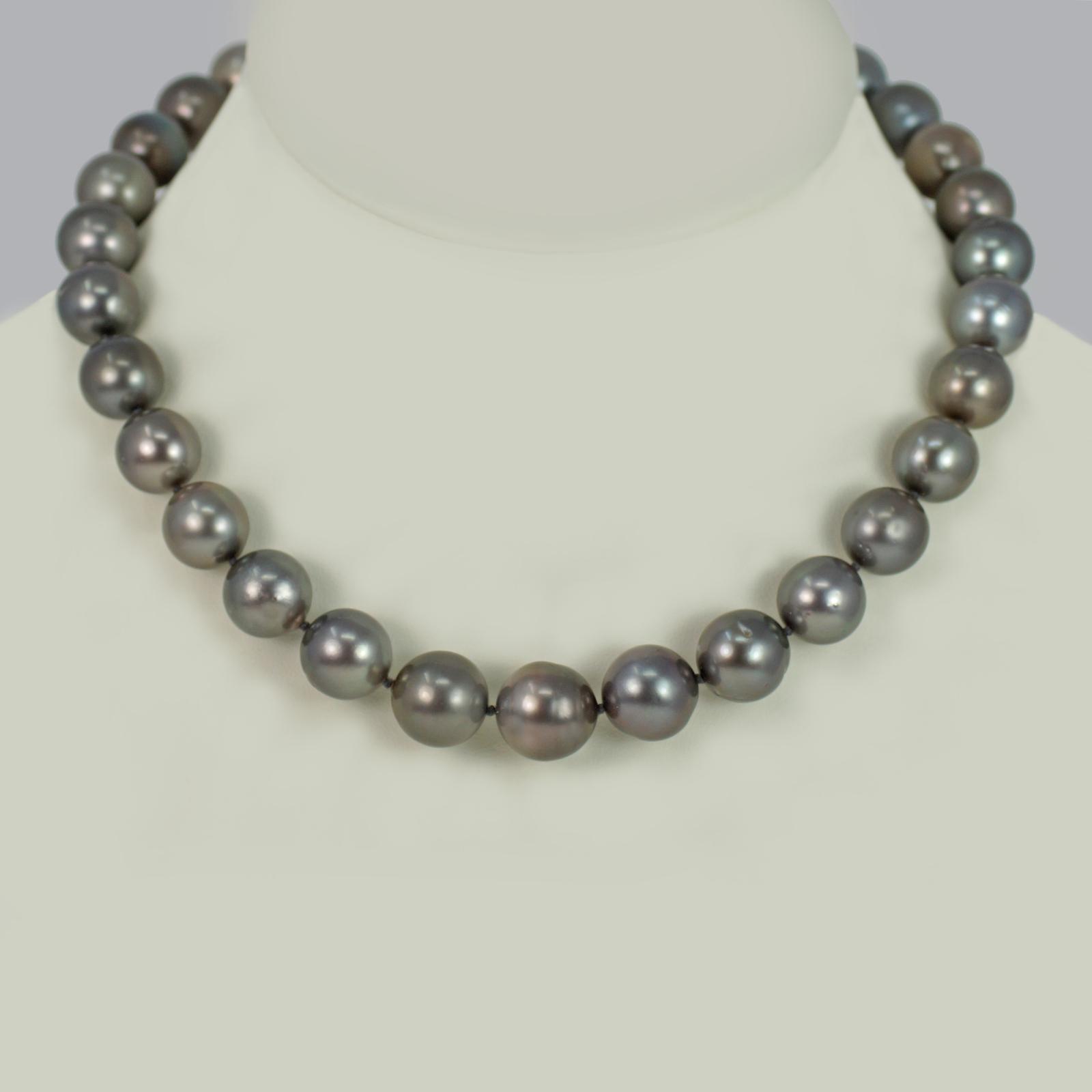 Vintage Tahitian Pearl Necklace Single Strand Large Black Pearl 19" Choker 1960s