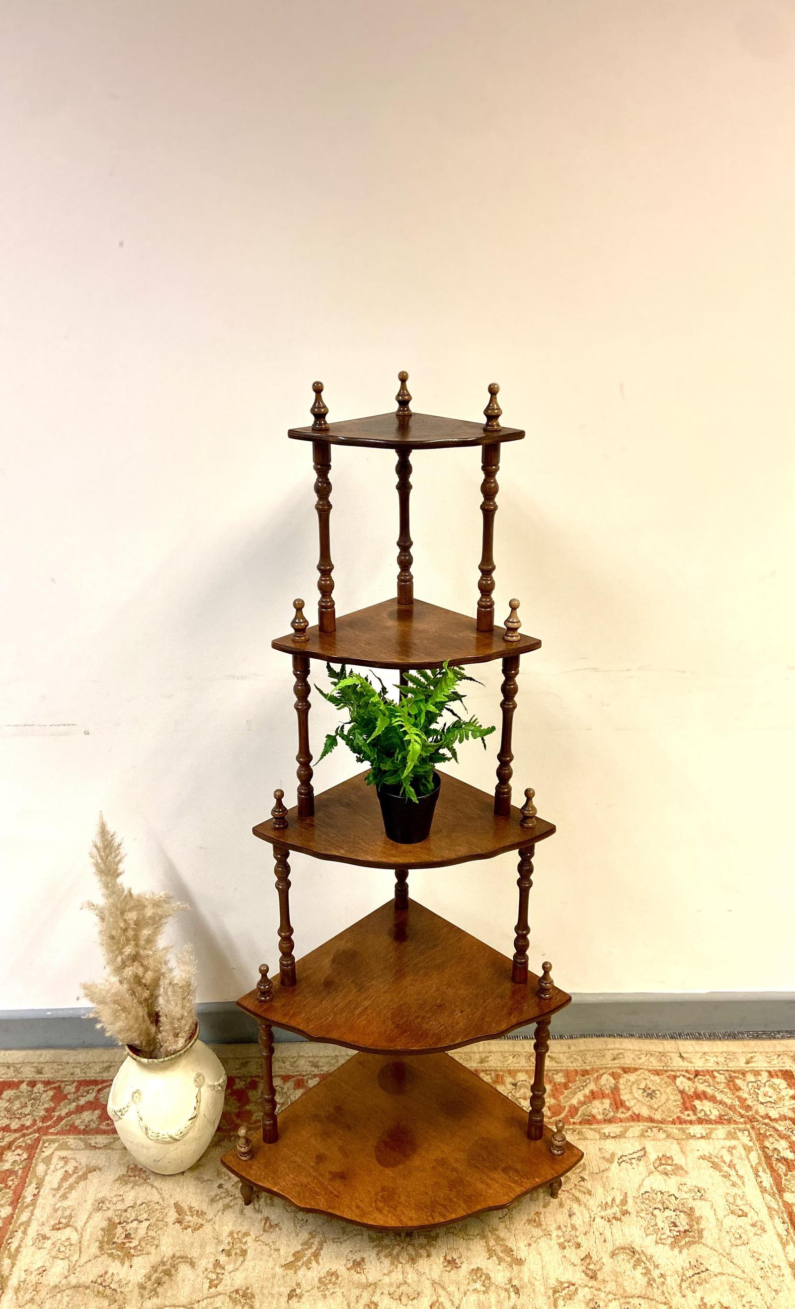 Vintage Tall 5 Shelf Light Oak Wood Corner Shelves - Made in England c.1970