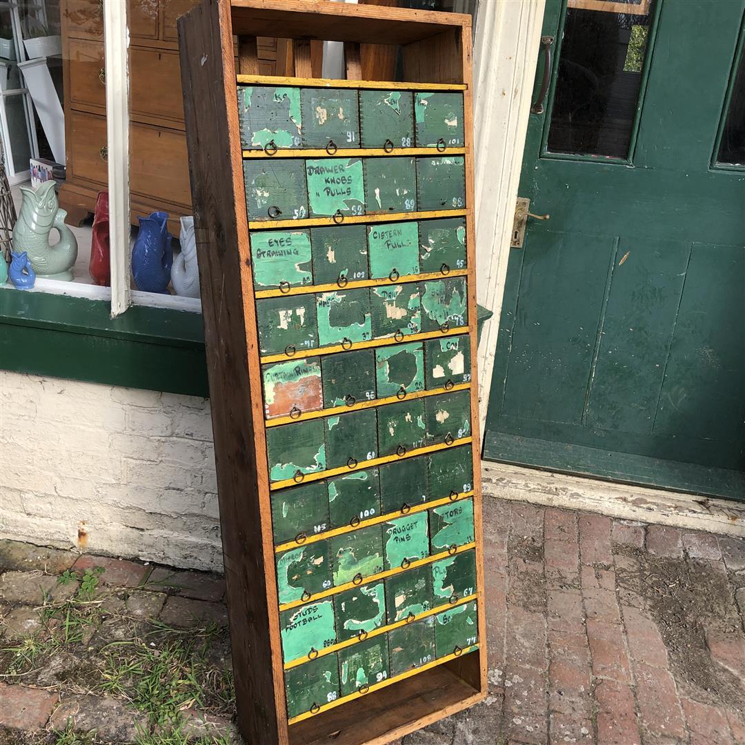 Vintage Tall Narrow Bank of 40 Drawers Hardware Shop Fitting