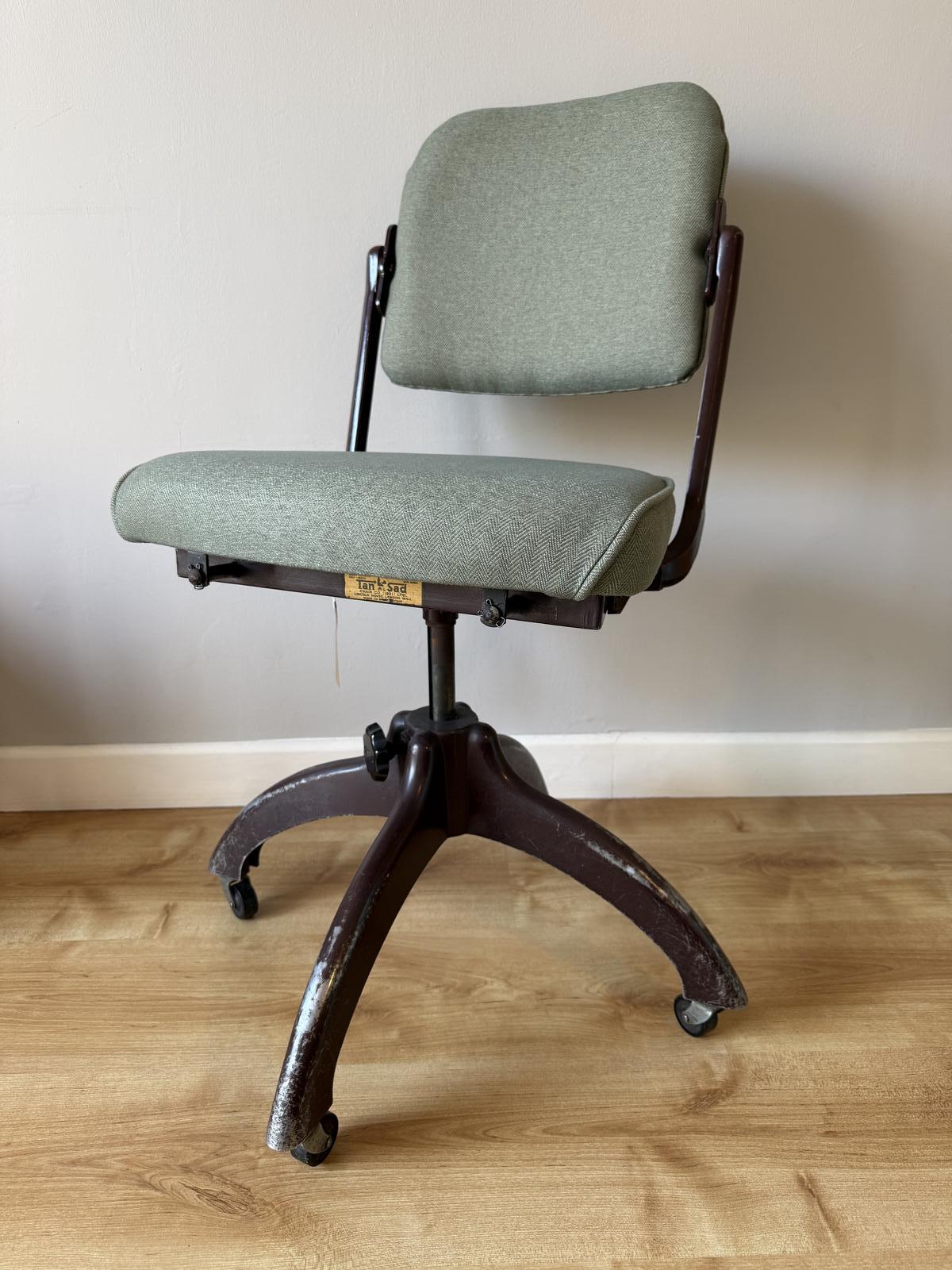 Here we have a lovely industrial Tan Sad 1950-1960's chair. Finished in original red paintwork, and recently professionally re-upholstered (by our friends at Westcote design). This is a really nice chair, comfortable and useable.