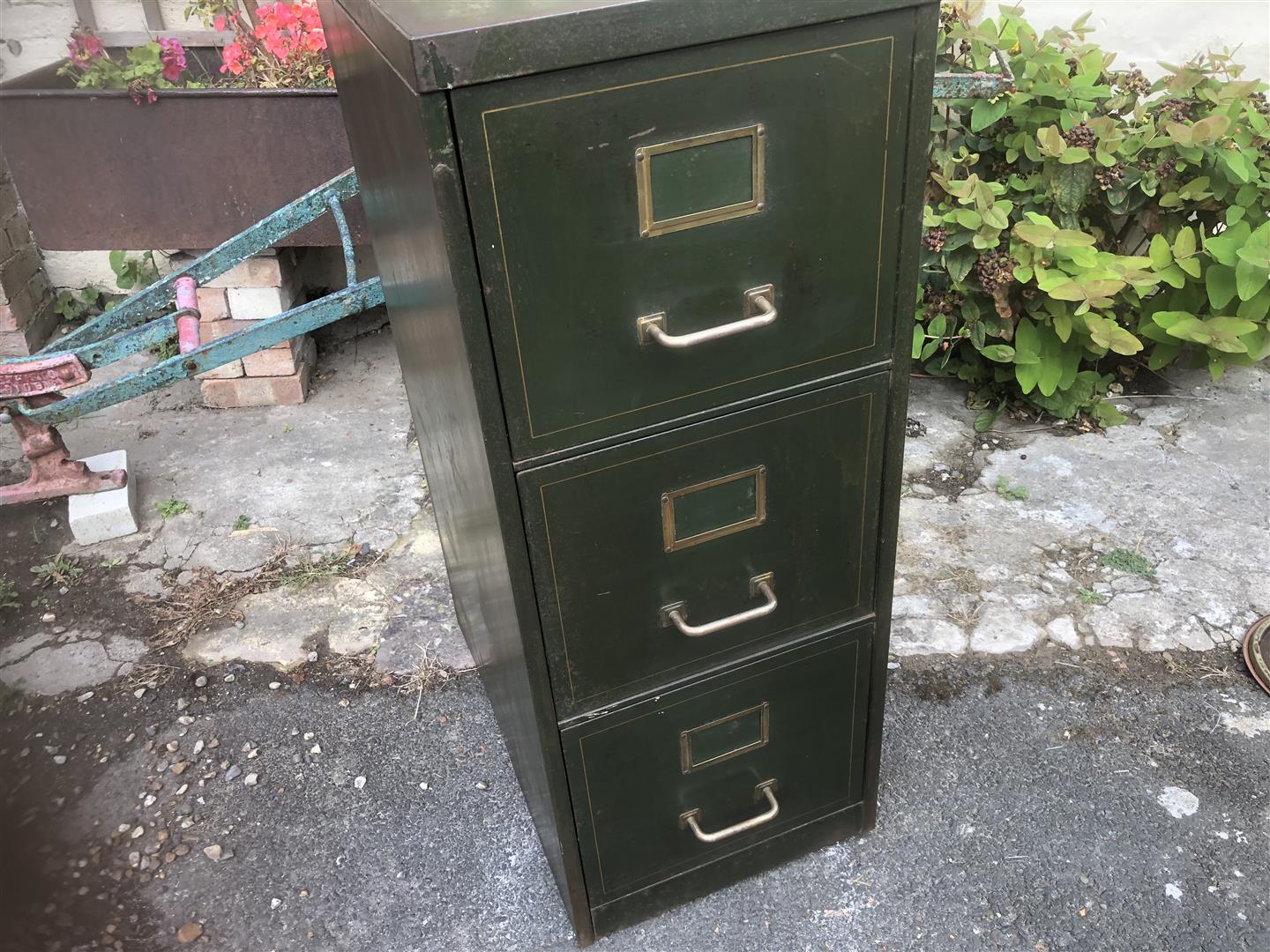 Vintage Three Drawer Green Metal Filing Cabinet (1 of 7)