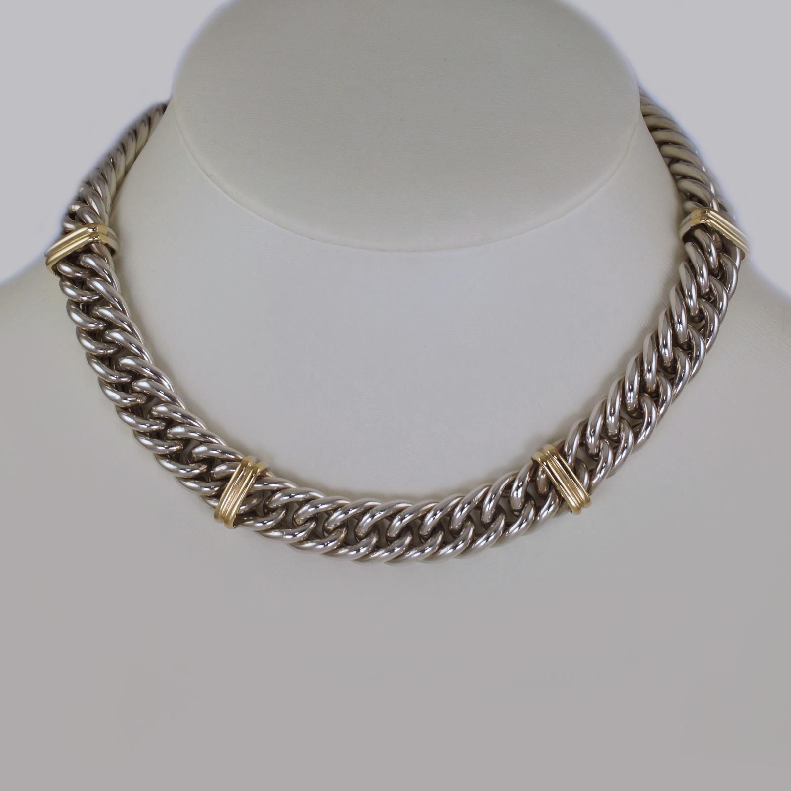 Vintage Tiffany & Co 18ct Gold & Silver Chain Necklace Heavy Curb Link 120 grams (1 of 9)
