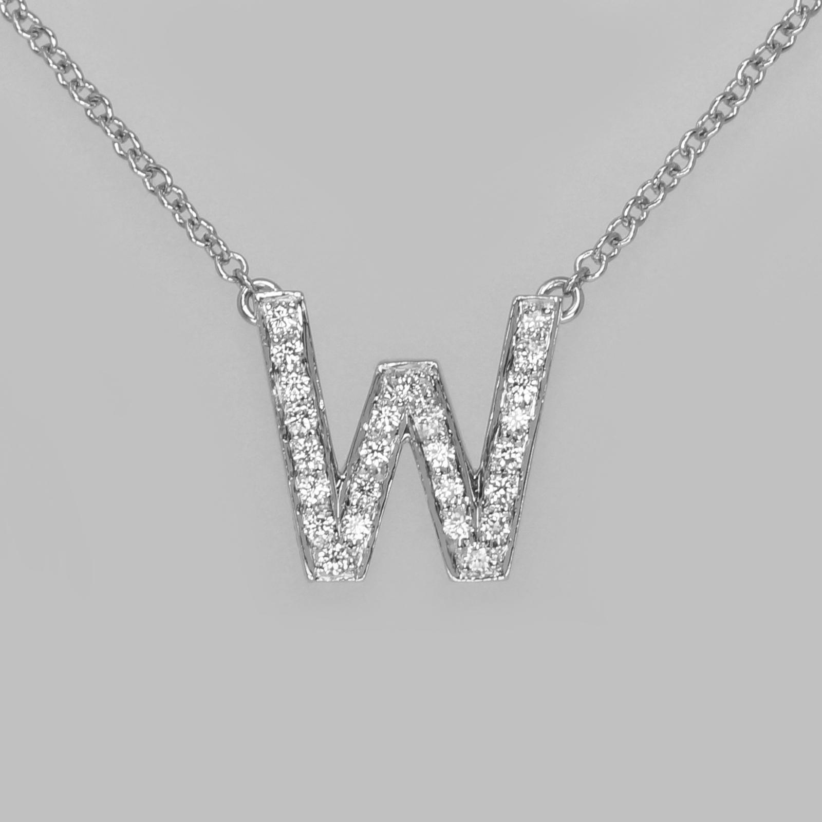 Vintage Tiffany & Co. Platinum 950 Diamond Letter "W" Necklace with Pouch Initial Pendant