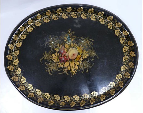 Vintage Toleware Handpainted Metal Oval Tray