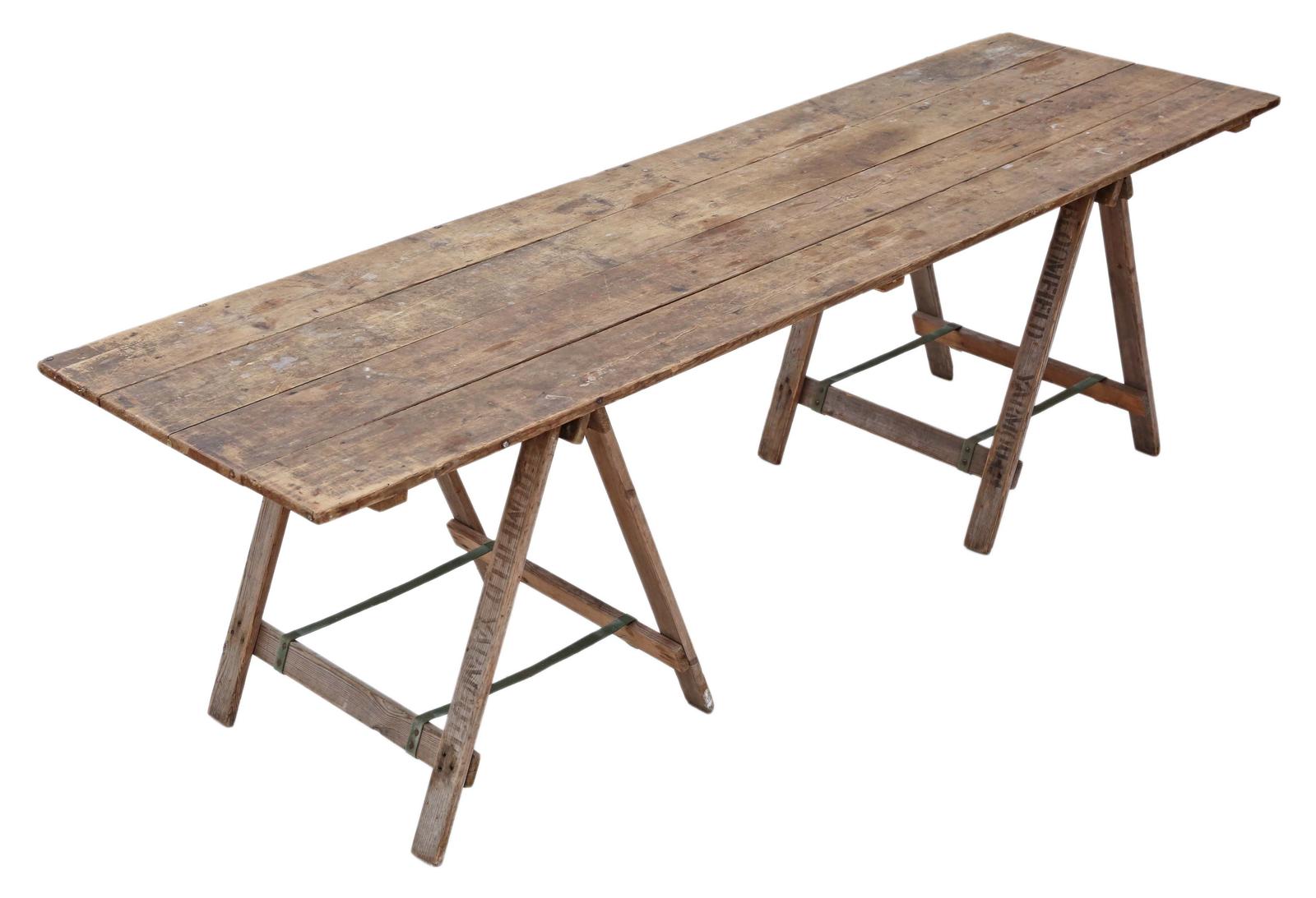Vintage Trestle Refectory Kitchen Garden Dining Table Mid 20th Century (1 of 4)