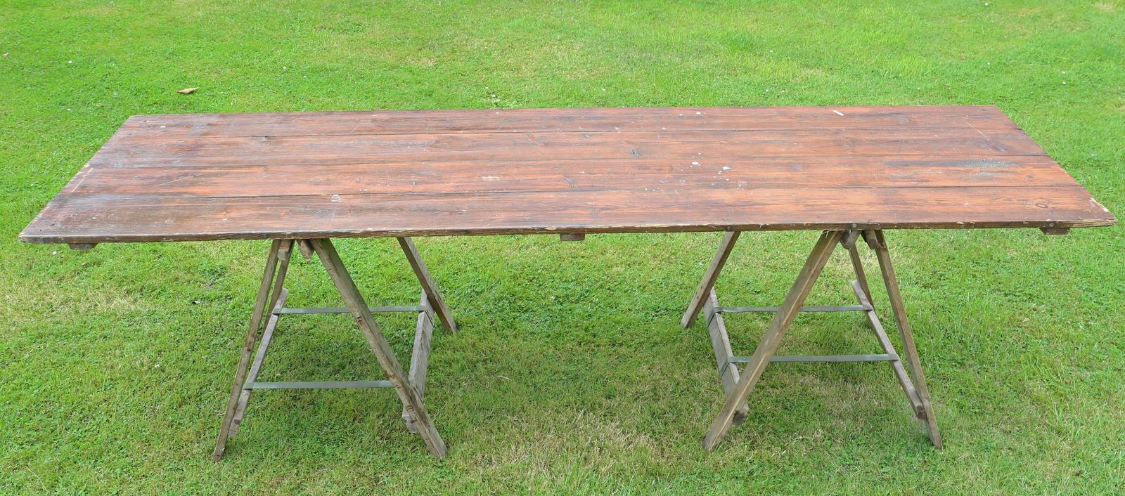 Vintage Trestle Refectory Kitchen Garden Dining Table Mid 20th Century (1 of 3)