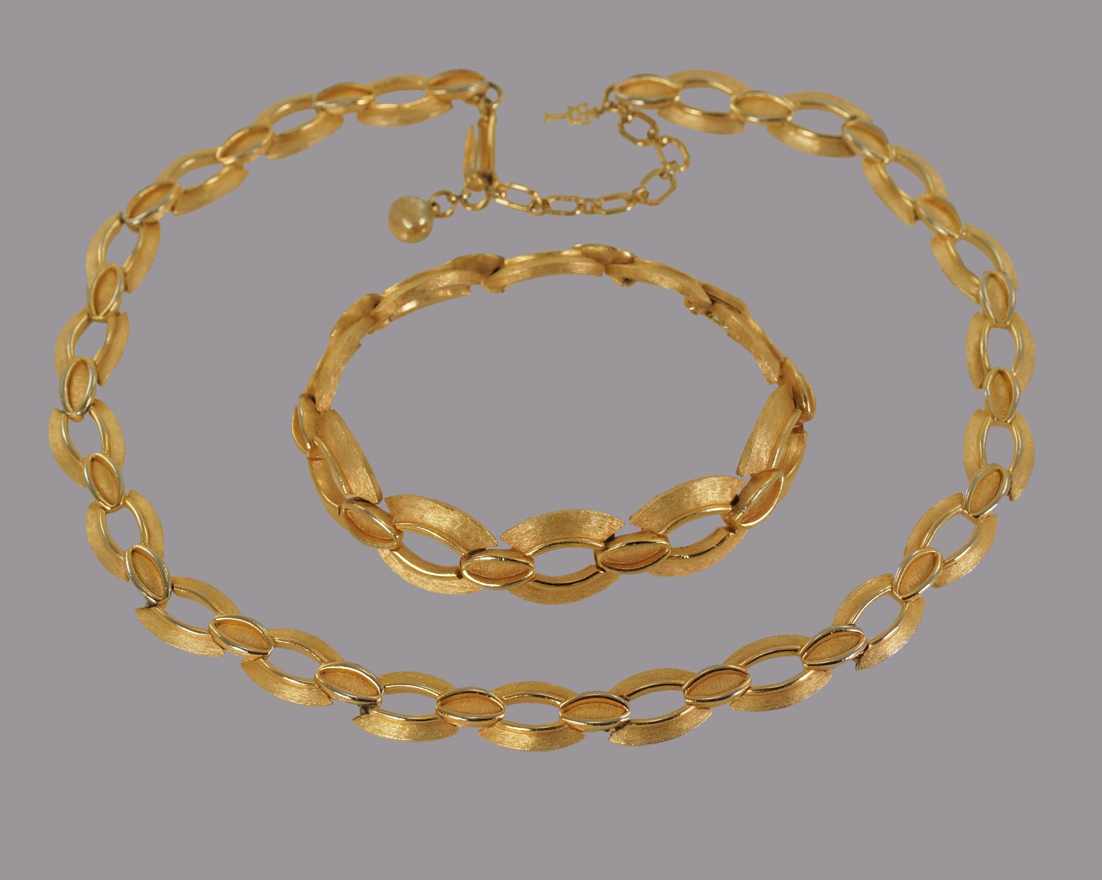 Vintage Trifari Link Chain Necklace & Bracelet Set 1960s Signed Crown & T Charm (1 of 1)