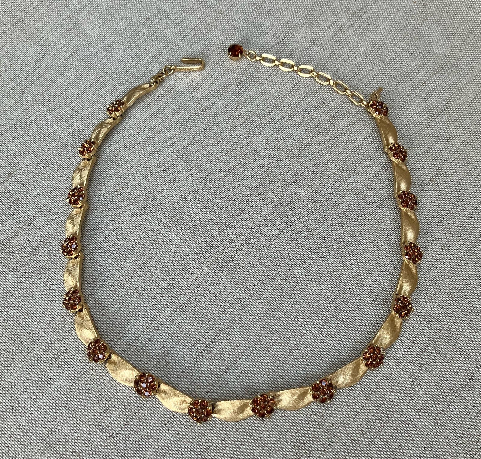Vintage Trifari Signed Gold Plated Crystal Collar Necklace - 40cm