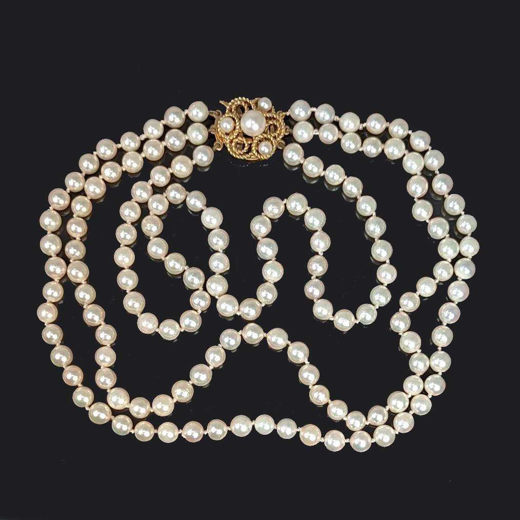 Vintage Triple  Strand Pearl Necklace with 9ct Gold Cluster Pearl Clasp 1960s Three Strand Pearl Necklace (1 of 8)