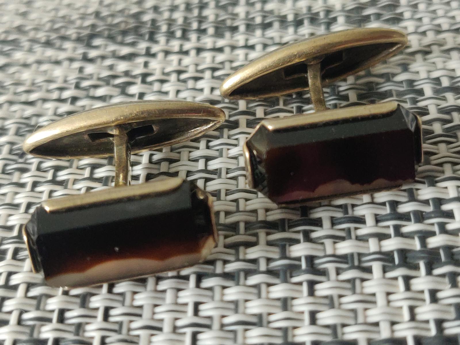 Vintage Ussr Period Russian 875 Gold Gilt Silver Cufflinks Agate Stone c.1950s-1960s