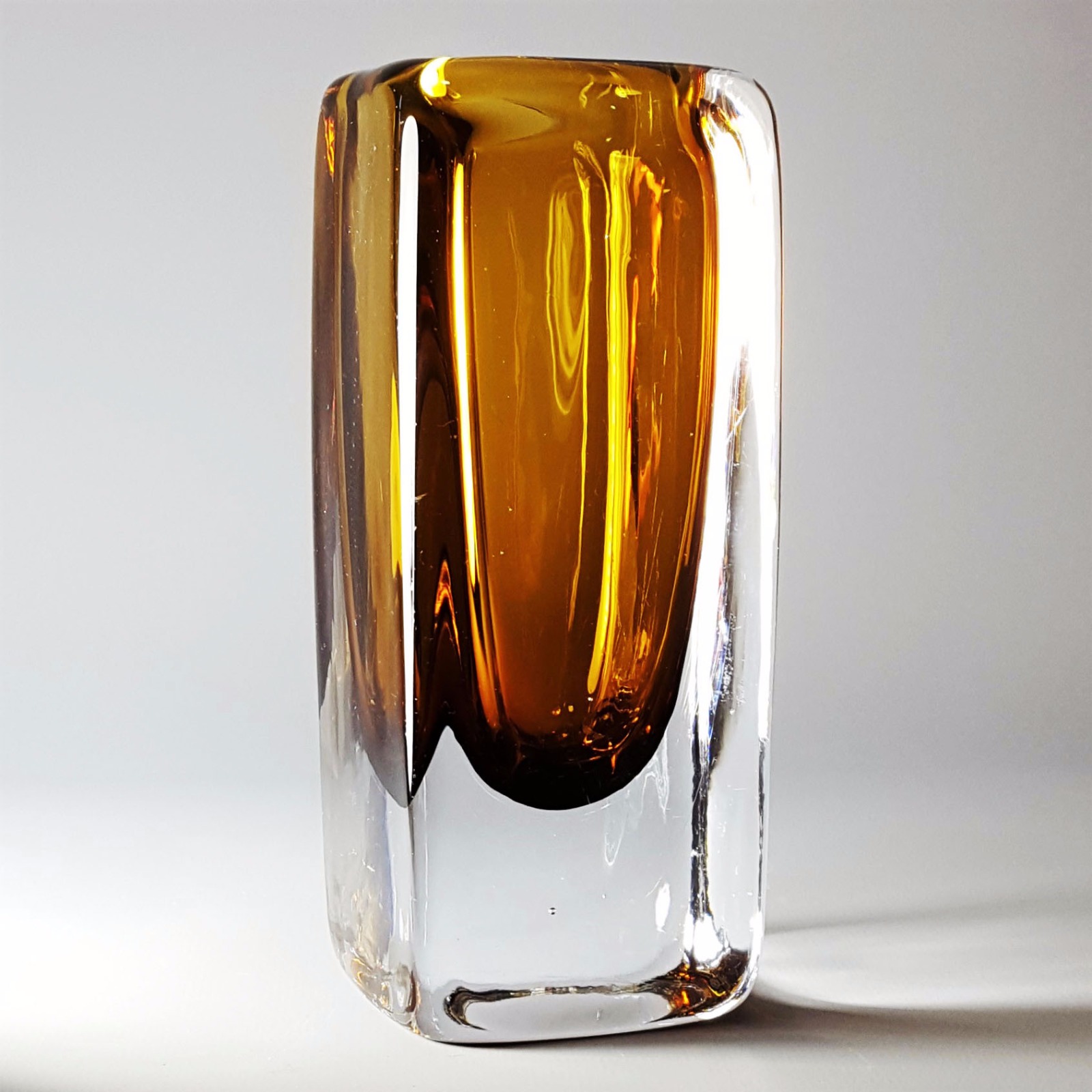 Vintage Vicke Lindstrand For Kosta Boda Amber Cased Glass Vase C.1960 (1 of 1)