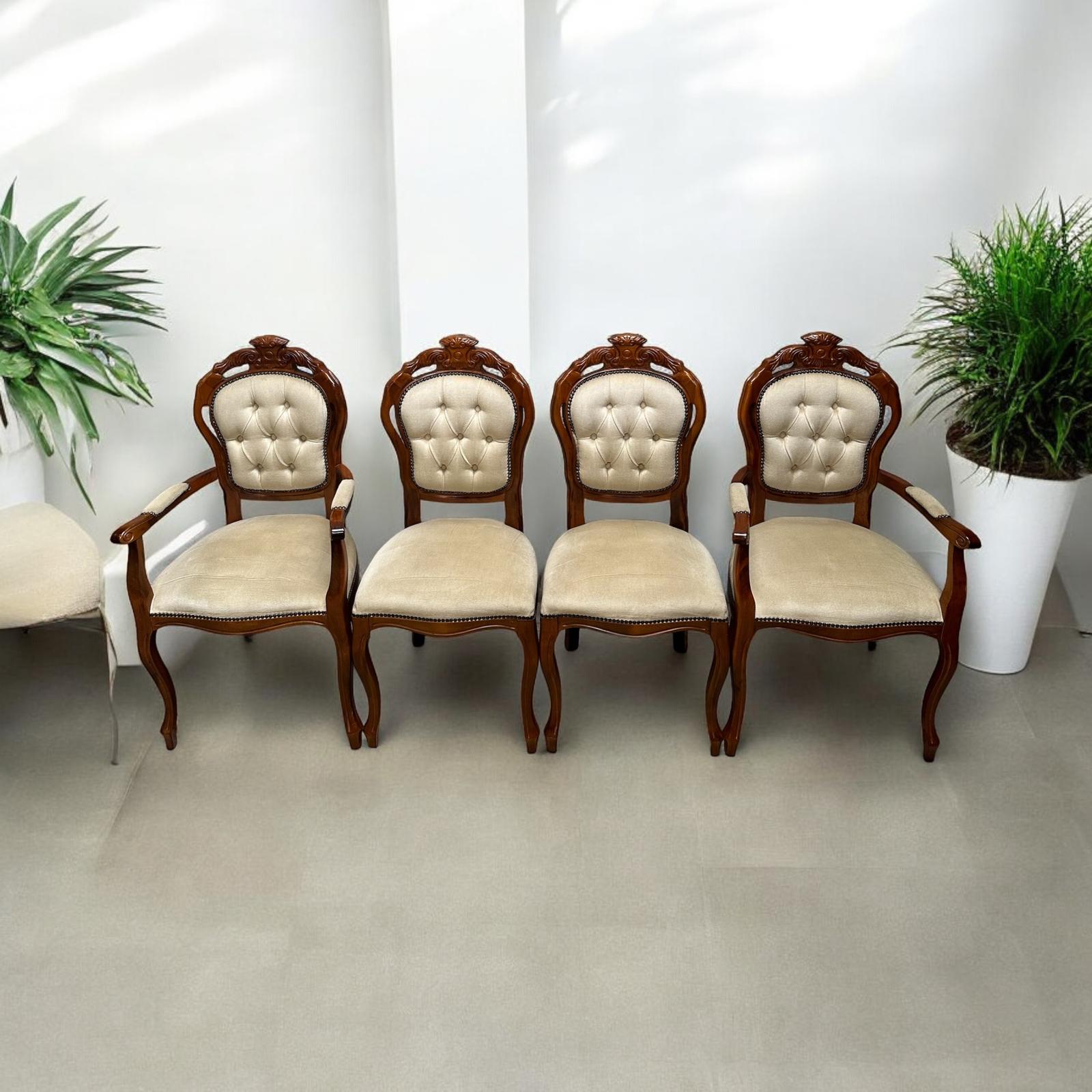 Vintage Victorian Style Walnut Dining Chairs c.1970 / Set of 4