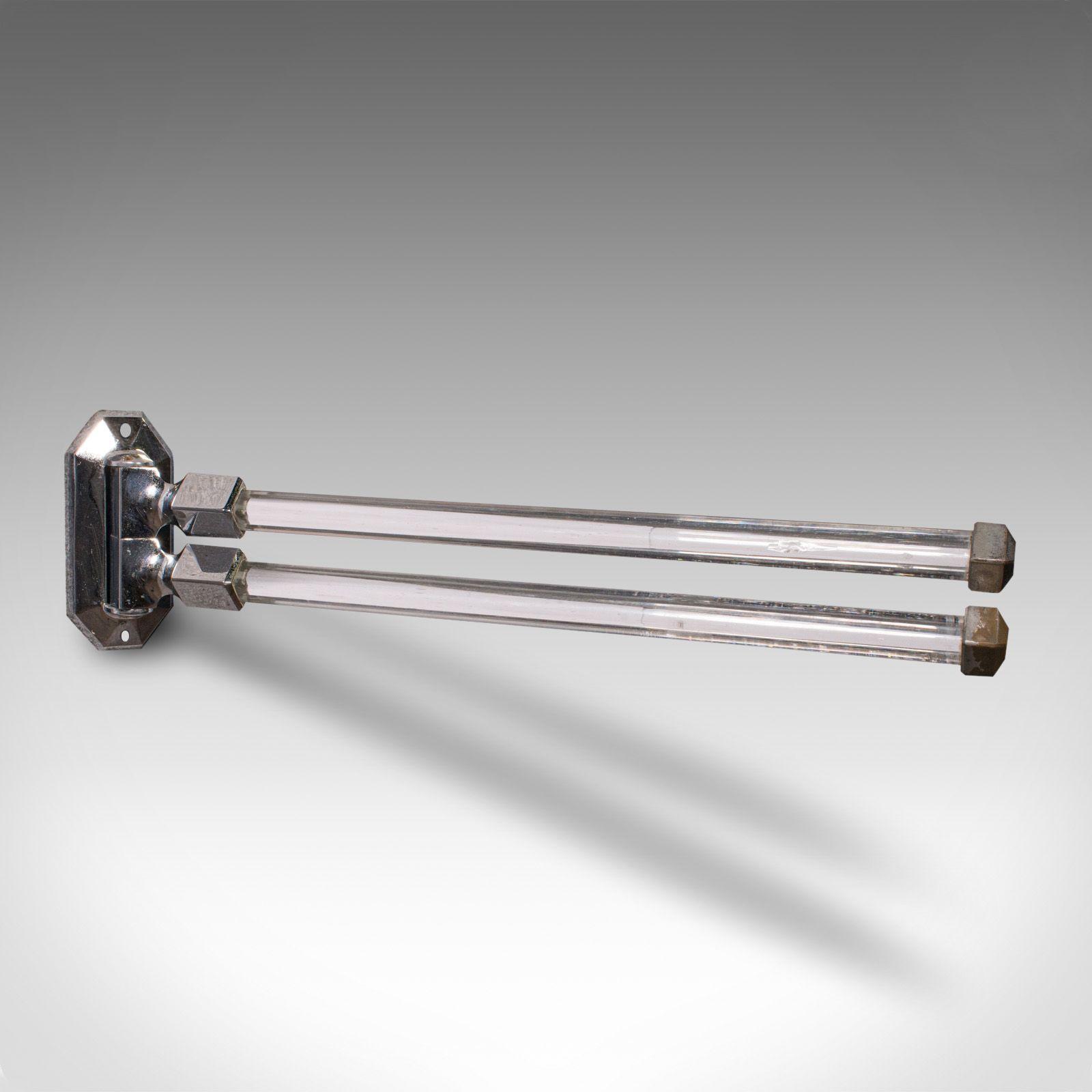 Vintage Wall Mounted Towel Rail English Glass & Chrome Valet - Art Deco c.1930